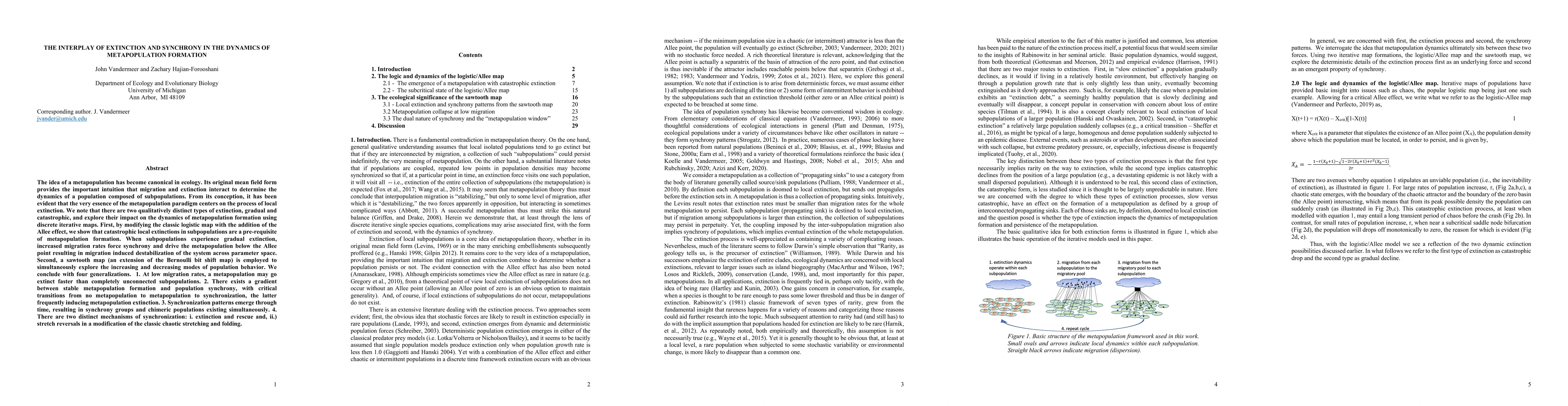The paper introduces a modified logistic/Allee map incorporating the Allee effect and a sawtooth map to study metapopulation dynamics, providing insights into the roles of extinction types and synchronization in metapopulation formation.
