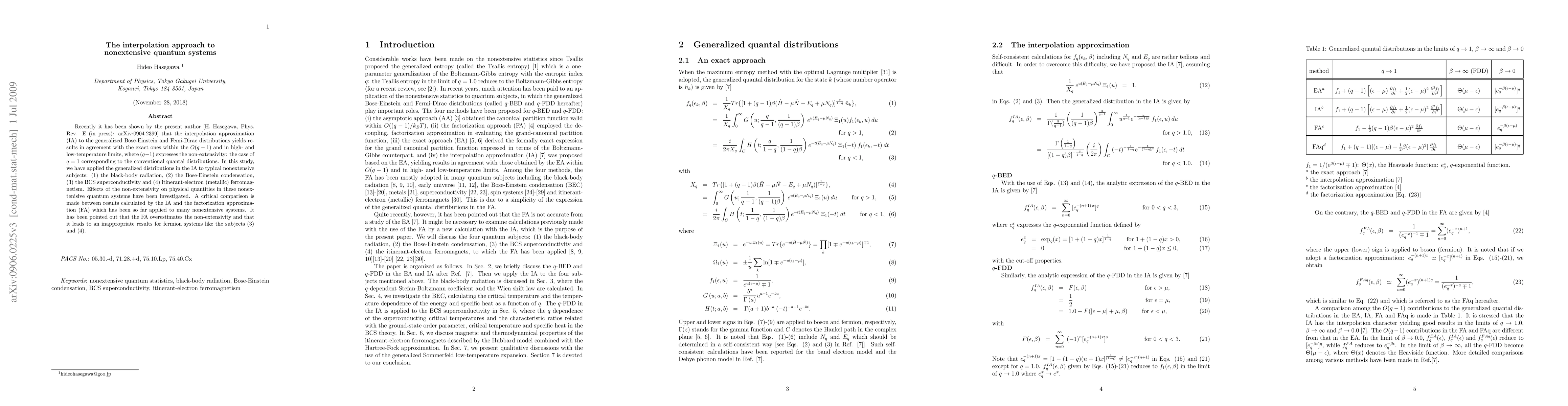 This paper explores the interpolation approach (IA) to generalized Bose-Einstein and Fermi-Dirac distributions, demonstrating its accuracy in nonextensive quantum systems. It applies IA to black-body radiation, Bose-Einstein condensation, BCS superconductivity, and itinerant-electron ferromagnetism, and compares IA results with the factorization approximation (FA), revealing that FA overstates non-extensivity and yields incorrect results for fermion systems.