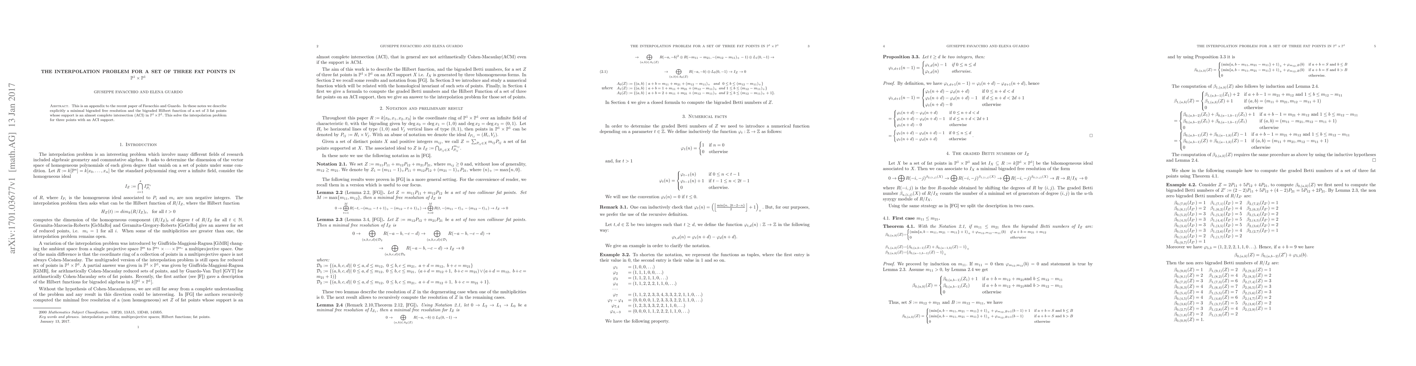 This is an appendix to the recent paper of Favacchio and Guardo. In these notes we describe explicitly a minimal bigraded free resolution and the bigraded Hilbert function of a set of 3 fat points whose support is an almost complete intersection (ACI) in $\mathbb{P}^1\times\mathbb{P}^1.$ This solve the interpolation problem for three points with an ACI support.