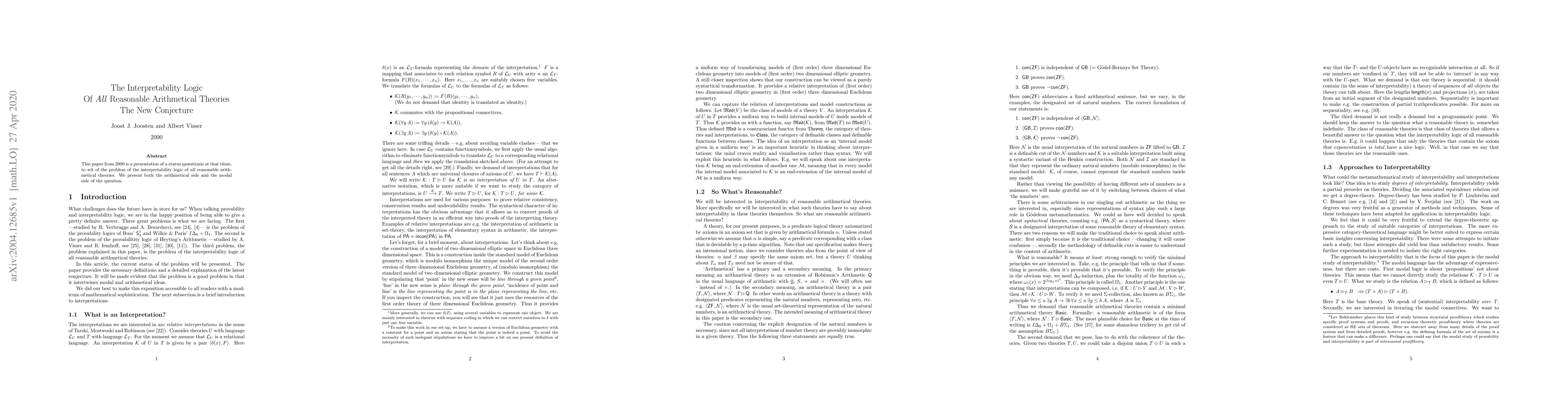 This paper from 2000 is a presentation of a status qu{\ae}stionis at that tiime, to wit of the problem of the interpretability logic of {\em all}\/ reasonable arithmetical theories. We present both the arithmetical side and the modal side of the question.