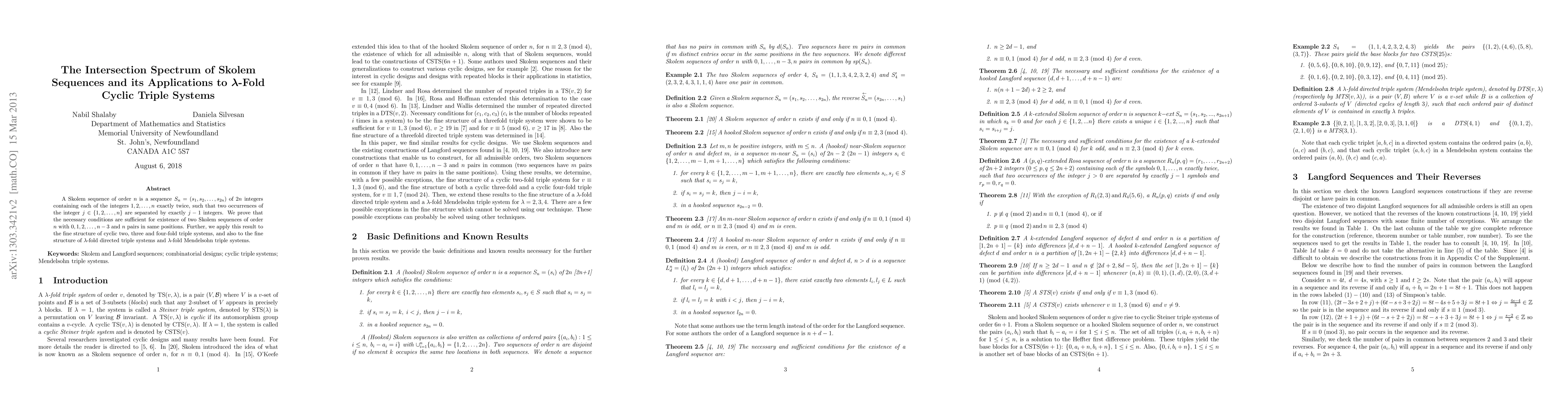 A Skolem sequence of order n is a sequence S_n=(s_{1},s_{2},...,s_{2n}) of 2n integers containing each of the integers 1,2,...,n exactly twice, such that two occurrences of the integer j in {1,2,...,n} are separated by exactly j-1 integers. We prove that the necessary conditions are sufficient for existence of two Skolem sequences of order n with 0,1,2,...,n-3 and n pairs in same positions. Further, we apply this result to the fine structure of cyclic two, three and four-fold triple systems, and also to the fine structure of lambda-fold directed triple systems and lambda-fold Mendelsohn triple systems. For a better understanding of the paper we added more details into a "Supplement".