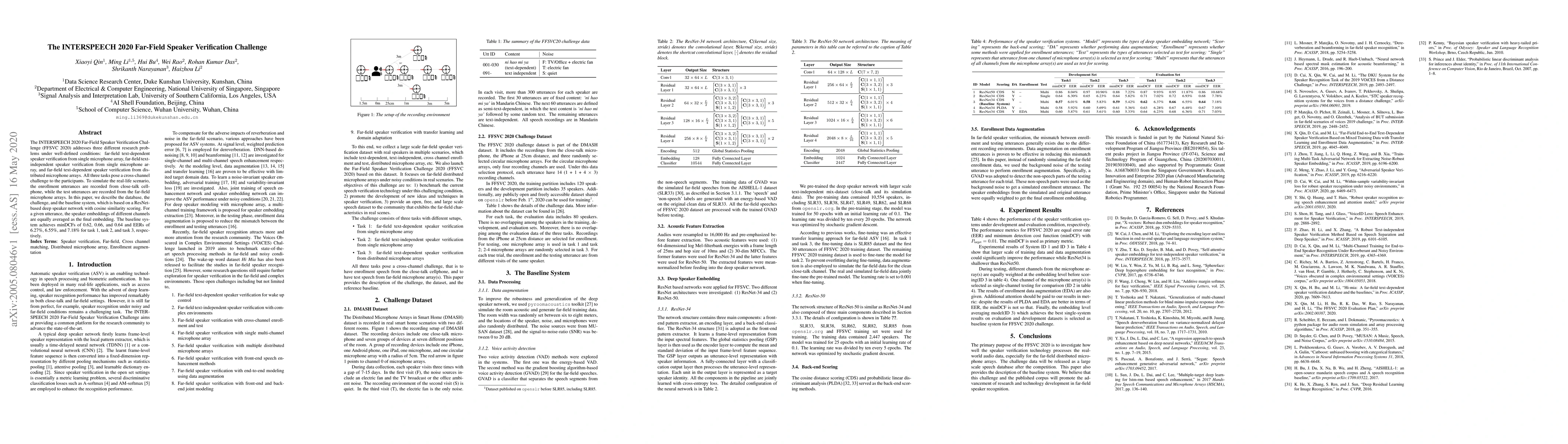 The INTERSPEECH 2020 Far-Field Speaker Verification Challenge evaluated three speaker verification tasks with varying levels of difficulty, achieving baseline system performance of 6.27% to 7.18% EERs.