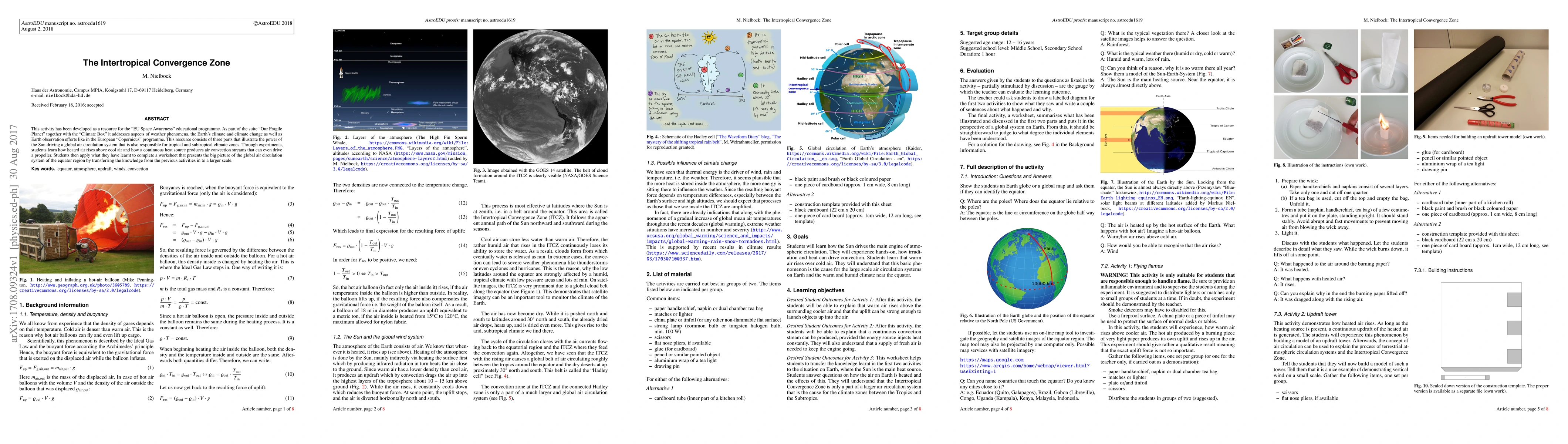 This activity has been developed as a resource for the "EU Space Awareness" educational programme. As part of the suite "Our Fragile Planet" together with the "Climate Box" it addresses aspects of weather phenomena, the Earth's climate and climate change as well as Earth observation efforts like in the European "Copernicus" programme. This resource consists of three parts that illustrate the power of the Sun driving a global air circulation system that is also responsible for tropical and subtropical climate zones. Through experiments, students learn how heated air rises above cool air and how a continuous heat source produces air convection streams that can even drive a propeller. Students then apply what they have learnt to complete a worksheet that presents the big picture of the global air circulation system of the equator region by transferring the knowledge from the previous activities in to a larger scale.