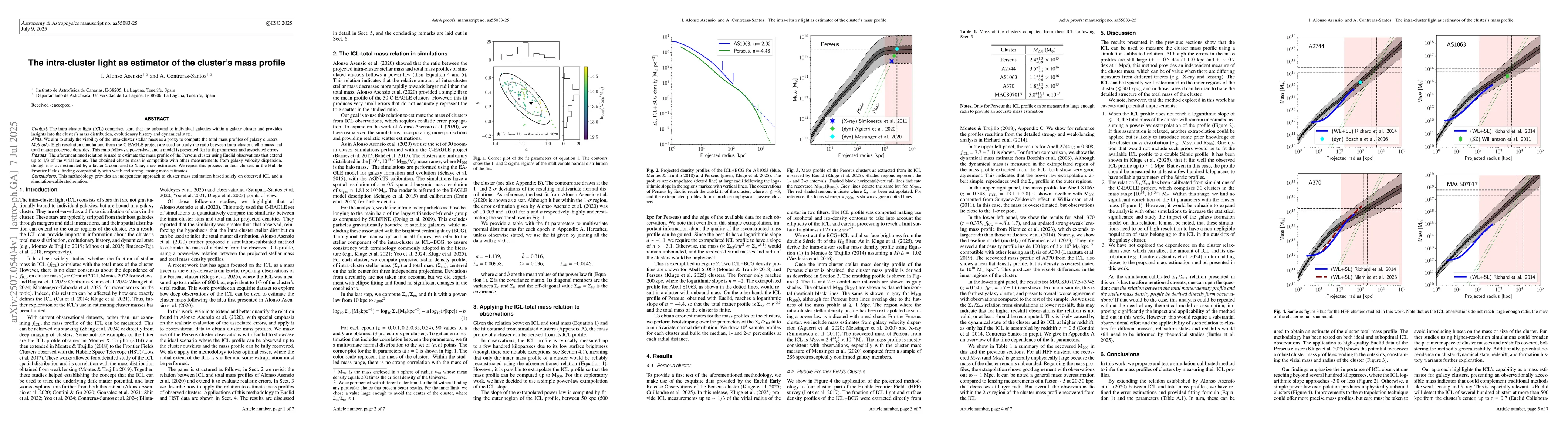 Context. The intra-cluster light (ICL) comprises stars that are unbound to individual galaxies within a galaxy cluster and provides insights into the cluster's mass distribution, evolutionary history and dynamical state. Aims. We aim to study the viability of the intra-cluster stellar mass as a proxy to compute the total mass profiles of galaxy clusters. Methods. High-resolution simulations from the C-EAGLE project are used to study the ratio between intra-cluster stellar mass and total matter projected densities. This ratio follows a power-law, and a model is presented for its fit parameters and associated errors. Results. The aforementioned relation is used to estimate the mass profile of the Perseus cluster using Euclid observations that extend up to 1/3 of the virial radius. The obtained cluster mass is compatible with other measurements from galaxy velocity dispersion, though it is overestimated by a factor 2 compared to X-ray mass estimates. We repeat this process for four clusters in the Hubble Frontier Fields, finding compatibility with weak and strong lensing mass estimates. Conclusions. This methodology provides an independent approach to cluster mass estimation based solely on observed ICL and a simulation-calibrated relation.