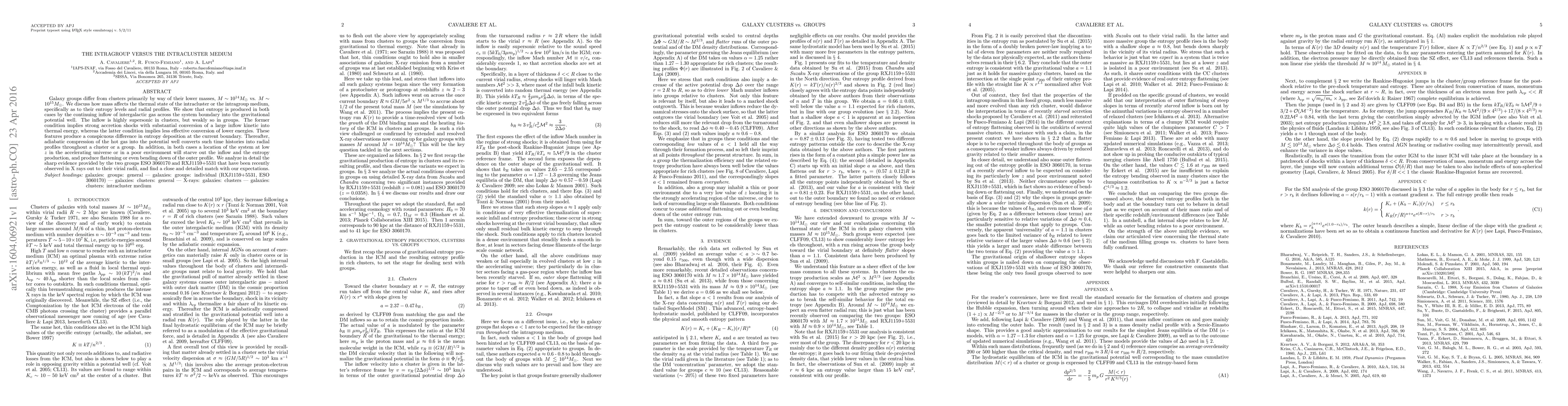 Galaxy groups and clusters differ in their thermal state due to varying mass levels, with cluster masses producing more entropy through supersonic gas inflow. This leads to distinct radial profiles and implications for galaxy evolution.