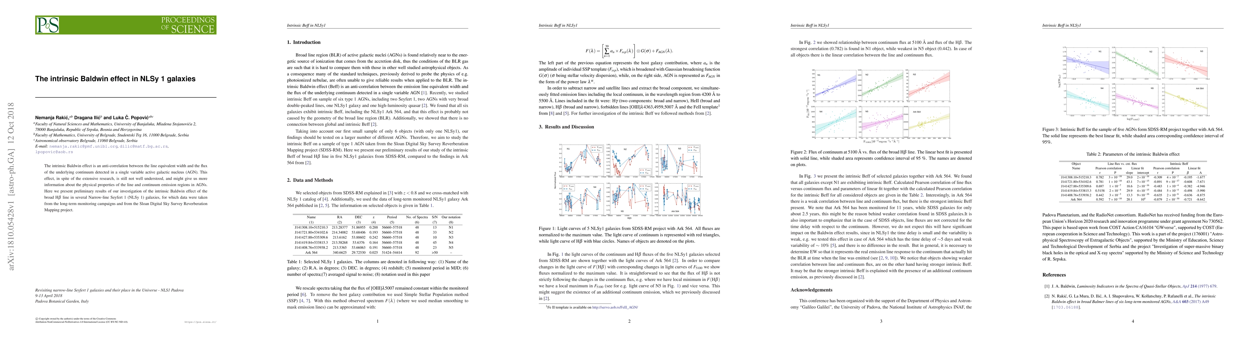 This study investigates the intrinsic Baldwin effect in Narrow-line Seyfert 1 (NLSy 1) galaxies, focusing on the anti-correlation between the broad H$\beta$ line equivalent width and the continuum flux. Preliminary results from long-term monitoring and SDSS Reverberation Mapping aim to enhance understanding of AGN physical properties.