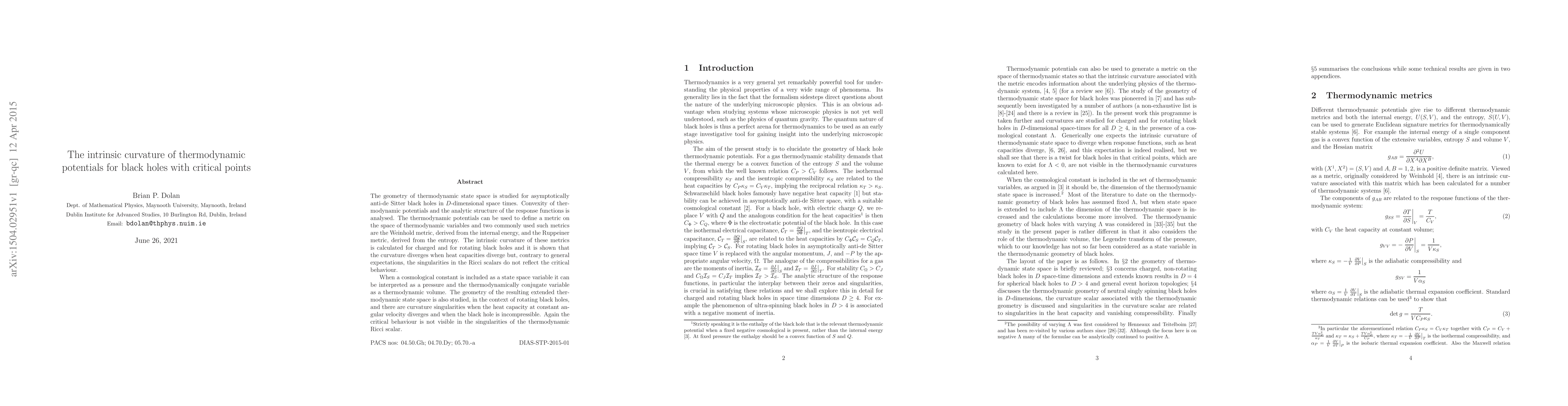 This paper investigates the intrinsic curvature of thermodynamic potentials in the state space of asymptotically anti-de Sitter black holes, showing that while curvature diverges with diverging heat capacities, the singularities in the Ricci scalars do not reflect critical behavior. The study also extends to rotating black holes and includes the cosmological constant as a pressure variable, revealing curvature singularities under specific conditions but still no visible critical behavior.