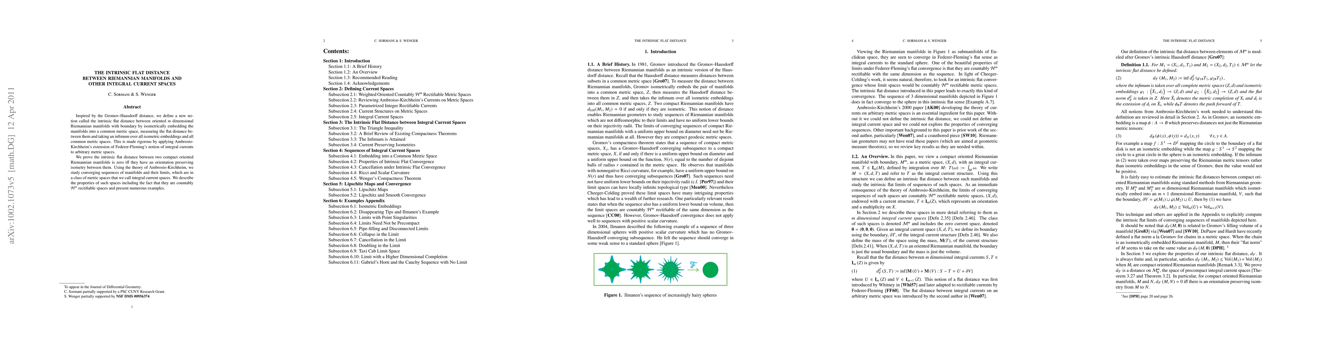 This paper defines the intrinsic flat distance between Riemannian manifolds by embedding them into a common metric space and measuring the flat distance, proving it equals zero if and only if there is an orientation-preserving isometry between them. The study extends to sequences of manifolds converging to integral current spaces, which are shown to be countably $\mathcal{H}^m$ rectifiable.