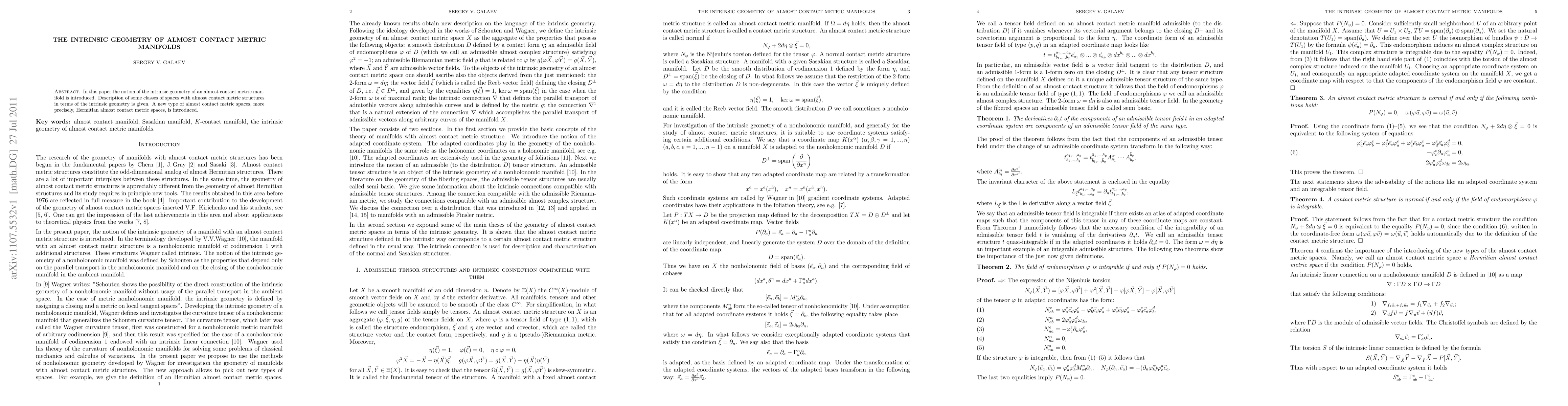 This paper introduces the intrinsic geometry of almost contact metric manifolds, including a new type called Hermitian almost contact metric spaces, with implications for understanding these complex geometric structures.