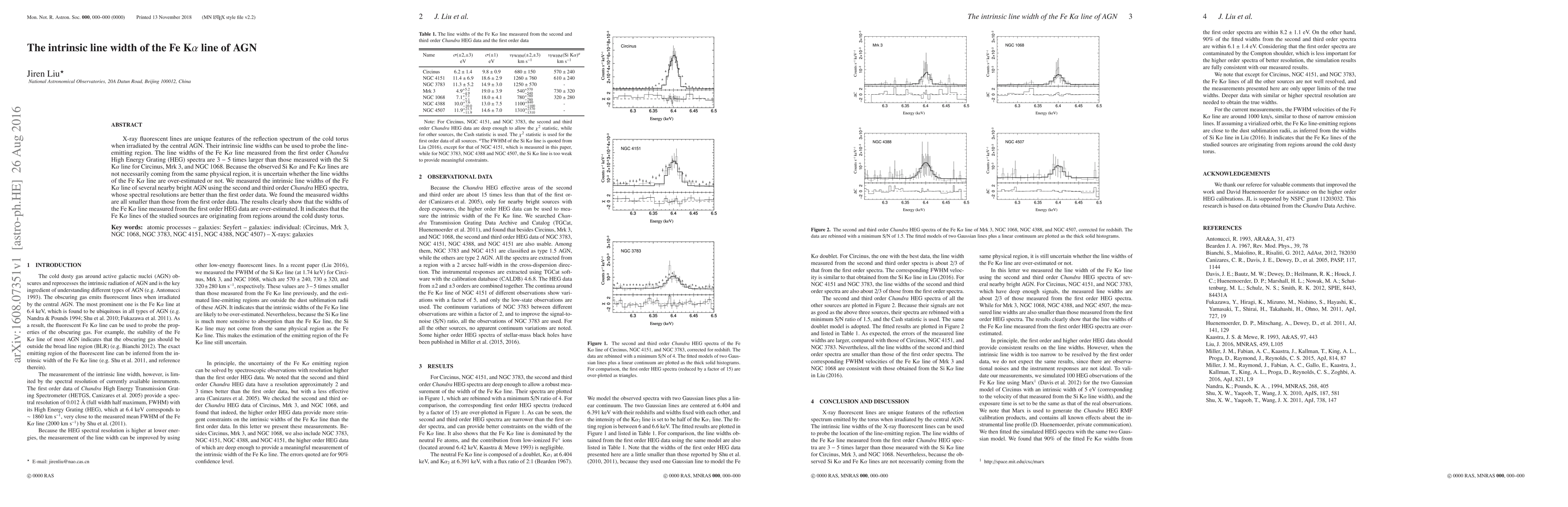 The intrinsic line widths of the Fe Ka line from AGN, previously overestimated in first-order Chandra HEG data, are now accurately measured using higher-order spectra, showing they are smaller and originate from regions near the cold dusty torus.