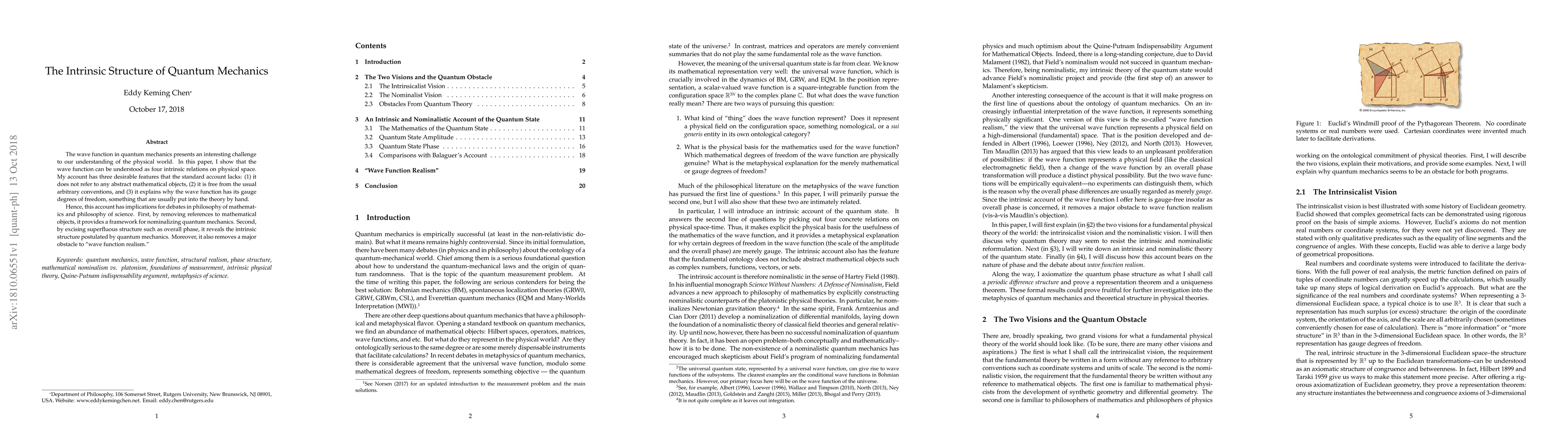 The wave function in quantum mechanics presents an interesting challenge to our understanding of the physical world. In this paper, I show that the wave function can be understood as four intrinsic relations on physical space. My account has three desirable features that the standard account lacks: (1) it does not refer to any abstract mathematical objects, (2) it is free from the usual arbitrary conventions, and (3) it explains why the wave function has its gauge degrees of freedom, something that are usually put into the theory by hand. Hence, this account has implications for debates in philosophy of mathematics and philosophy of science. First, by removing references to mathematical objects, it provides a framework for nominalizing quantum mechanics. Second, by excising superfluous structure such as overall phase, it reveals the intrinsic structure postulated by quantum mechanics. Moreover, it also removes a major obstacle to "wave function realism."