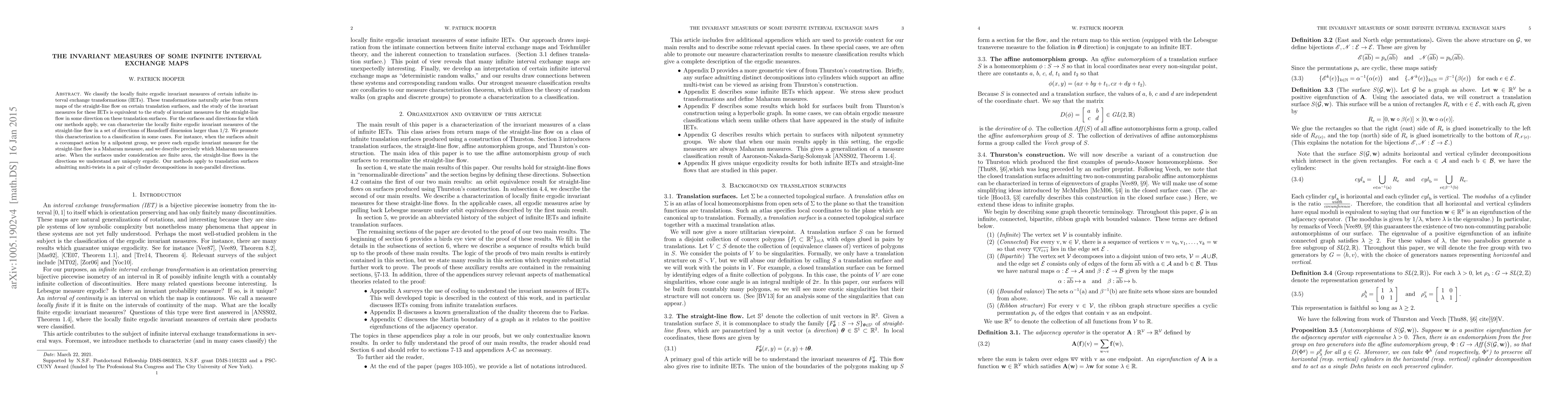 We classify the locally finite ergodic invariant measures of certain infinite interval exchange transformations (IETs). These transformations naturally arise from return maps of the straight-line flow on certain translation surfaces, and the study of the invariant measures for these IETs is equivalent to the study of invariant measures for the straight-line flow in some direction on these translation surfaces. For the surfaces and directions for which our methods apply, we can characterize the locally finite ergodic invariant measures of the straight-line flow in a set of directions of Hausdorff dimension larger than 1/2. We promote this characterization to a classification in some cases. For instance, when the surfaces admit a cocompact action by a nilpotent group, we prove each ergodic invariant measure for the straight-line flow is a Maharam measure, and we describe precisely which Maharam measures arise. When the surfaces under consideration are finite area, the straight-line flows in the directions we understand are uniquely ergodic. Our methods apply to translation surfaces admitting multi-twists in a pair of cylinder decompositions in non-parallel directions.
