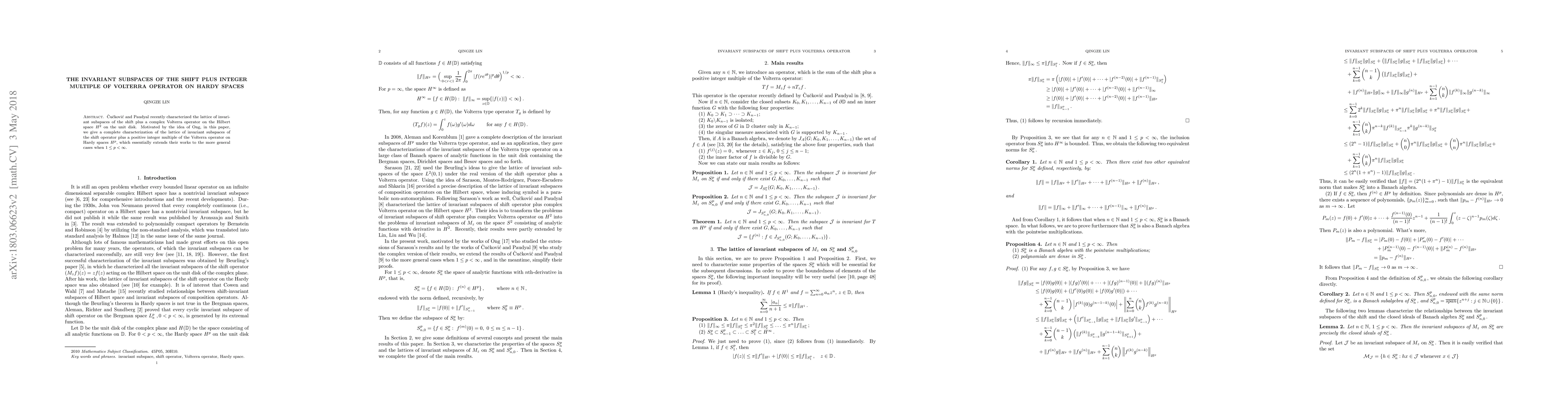 This paper extends the characterization of invariant subspaces of the shift plus a complex Volterra operator to the shift plus a positive integer multiple of the Volterra operator on Hardy spaces \(H^p\) for \(1 \leq p < \infty\), generalizing previous work on the \(H^2\) space.
