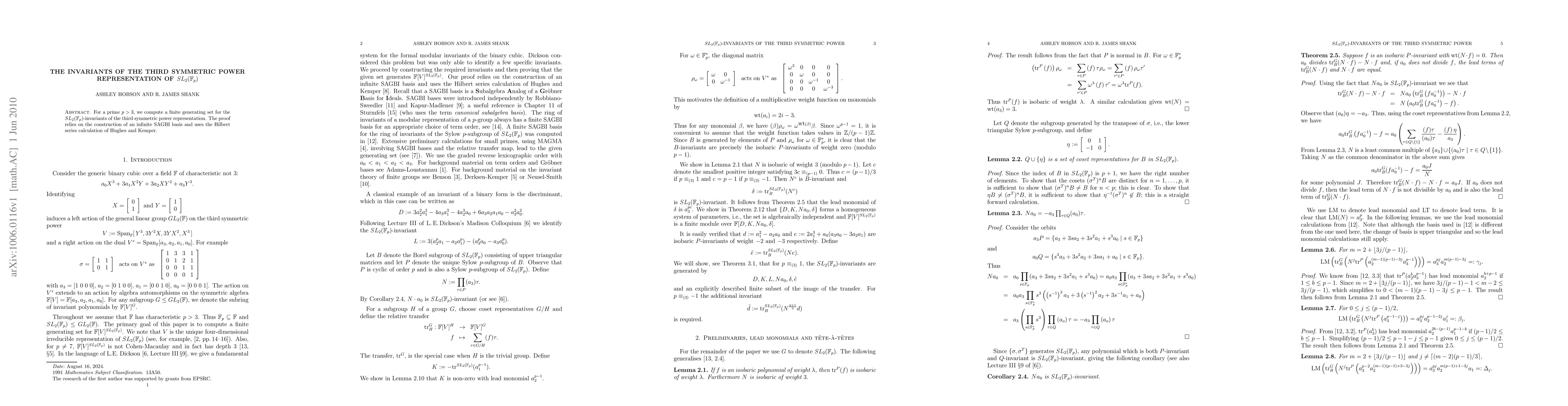This paper computes a finite generating set for the SL_2(F_p)-invariants of the third symmetric power representation for primes p>3, utilizing an infinite SAGBI basis and the Hilbert series calculation by Hughes and Kemper.