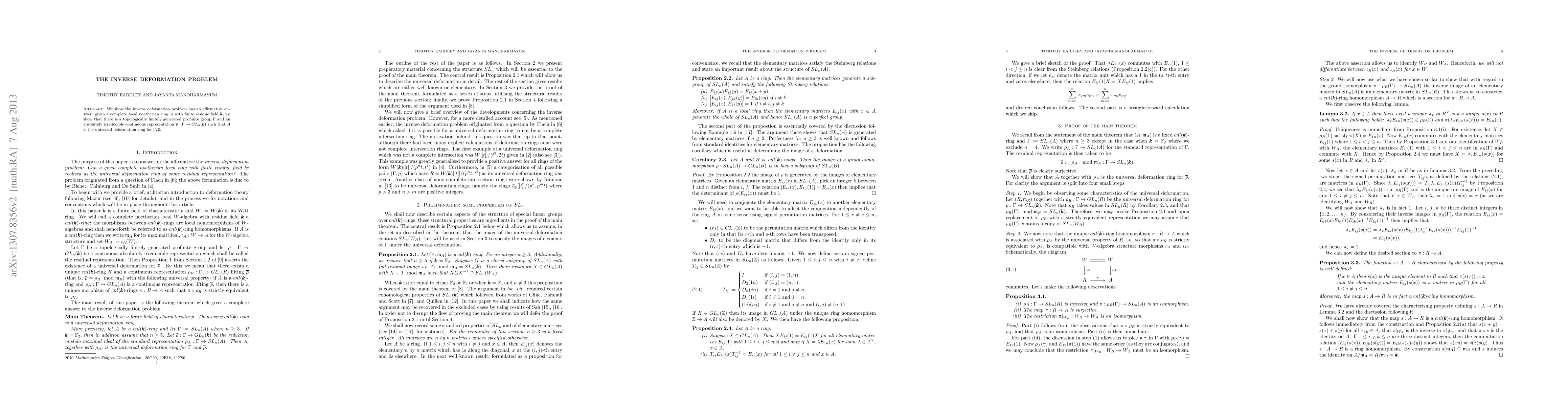 We show the inverse deformation problem has an affirmative answer: given a complete local noetherian ring $A$ with finite residue field $\pmb{k}$, we show that there is a topologically finitely generated profinite group $\Gamma$ and an absolutely irreducible continuous representation $\bar\rho:\Gamma\to GL_n(\pmb{k})$ such that $A$ is the universal deformation ring for $\Gamma,\bar\rho$.