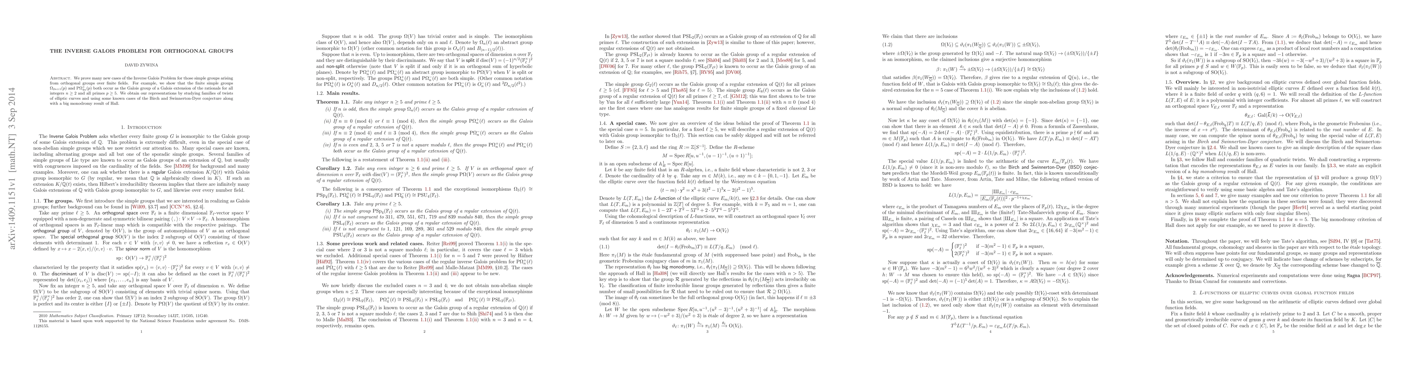 This paper proves new cases of the Inverse Galois Problem for simple orthogonal groups over finite fields, showing that groups like Omega_{2n+1}(p) and POmega_{4n}^+(p) can be realized as Galois groups over the rationals. The authors achieve this by analyzing twists of elliptic curves and leveraging known results from the Birch and Swinnerton-Dyer conjecture and Hall's monodromy theorem.