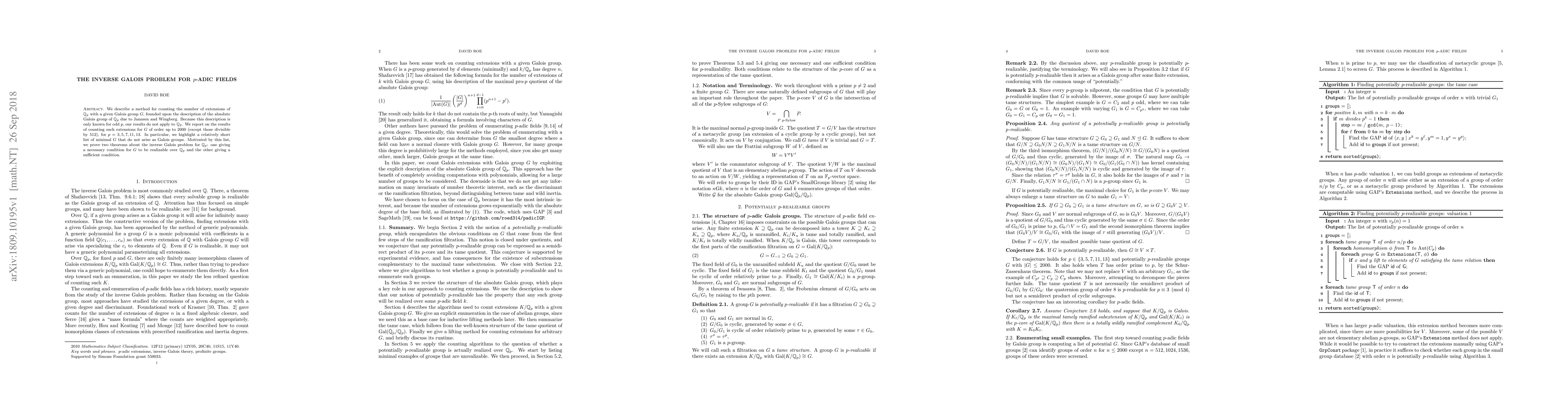A method for counting extensions of $ extit{p}$-adic fields with given Galois groups is developed, focusing on odd prime $p$, and two theorems about the inverse Galois problem are proven based on these findings.