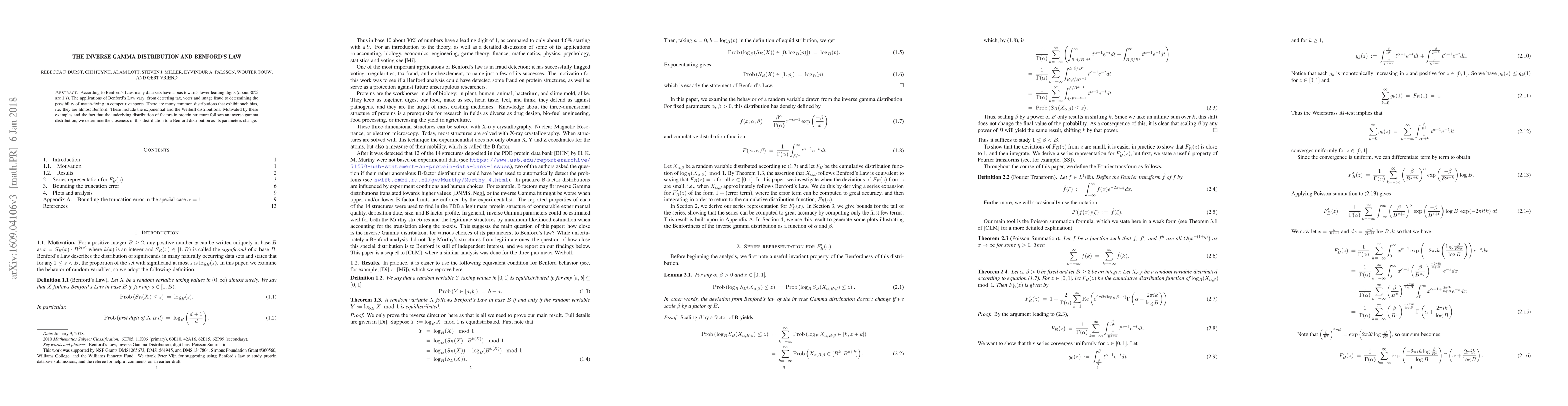 This paper investigates the relationship between the inverse gamma distribution, commonly found in protein structure factors, and Benford's Law, which describes a bias towards lower leading digits in various datasets. The study assesses how the inverse gamma distribution aligns with Benford's Law as its parameters vary.