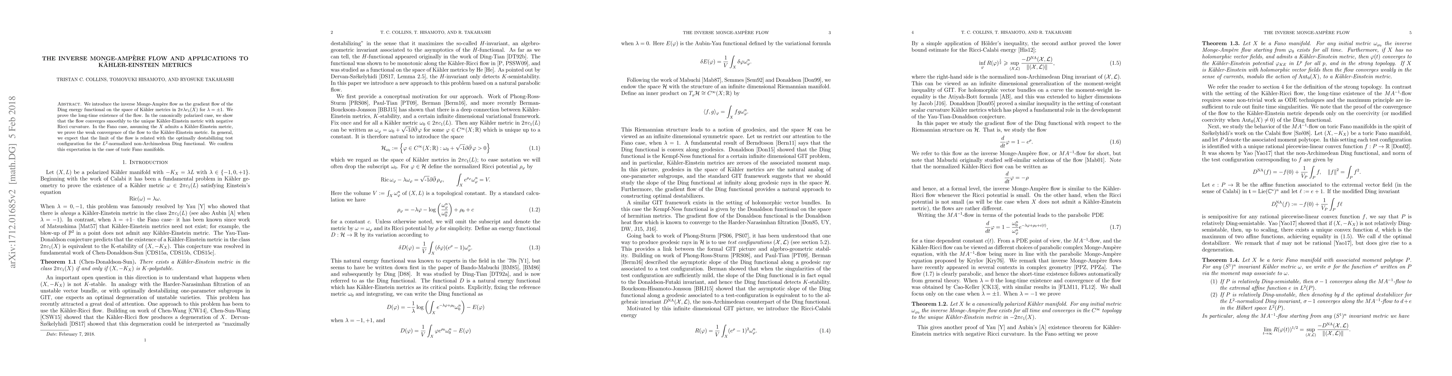 This paper introduces the inverse Monge-Ampere flow as a gradient flow for the Ding energy functional on the space of Kähler metrics, proving its long-time existence. It demonstrates the convergence of the flow to the unique Kähler-Einstein metric in polarized cases and weak convergence in Fano cases, with specific confirmation for toric Fano manifolds.