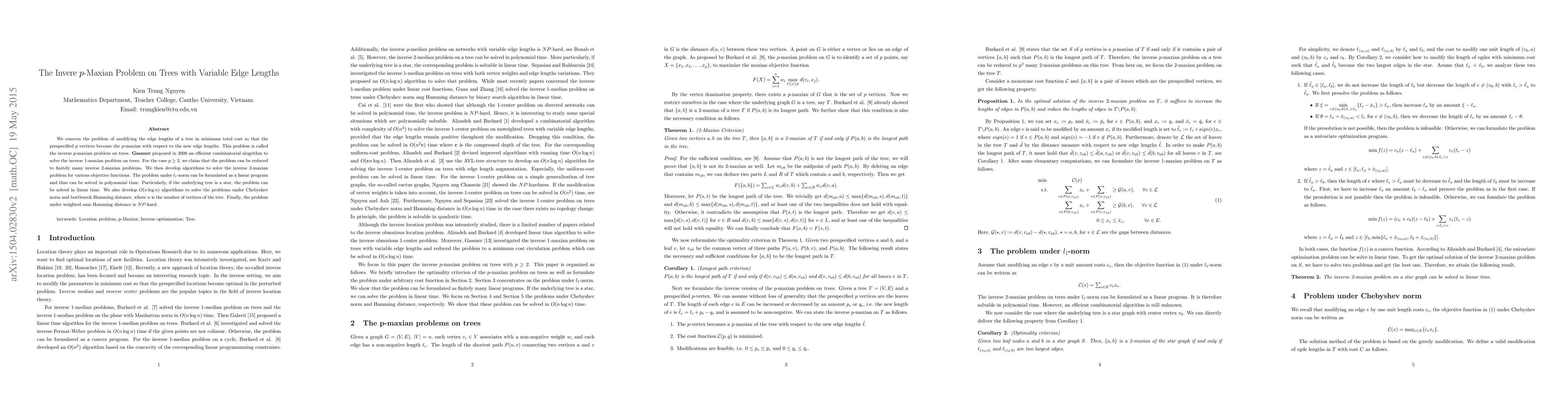 Researchers solved the inverse $p$-maxian problem on trees with variable edge lengths by reducing it to multiple smaller problems and developing efficient algorithms for specific norms, including linear time solutions for star-shaped trees and polynomial-time solutions under $l_1$-norm.