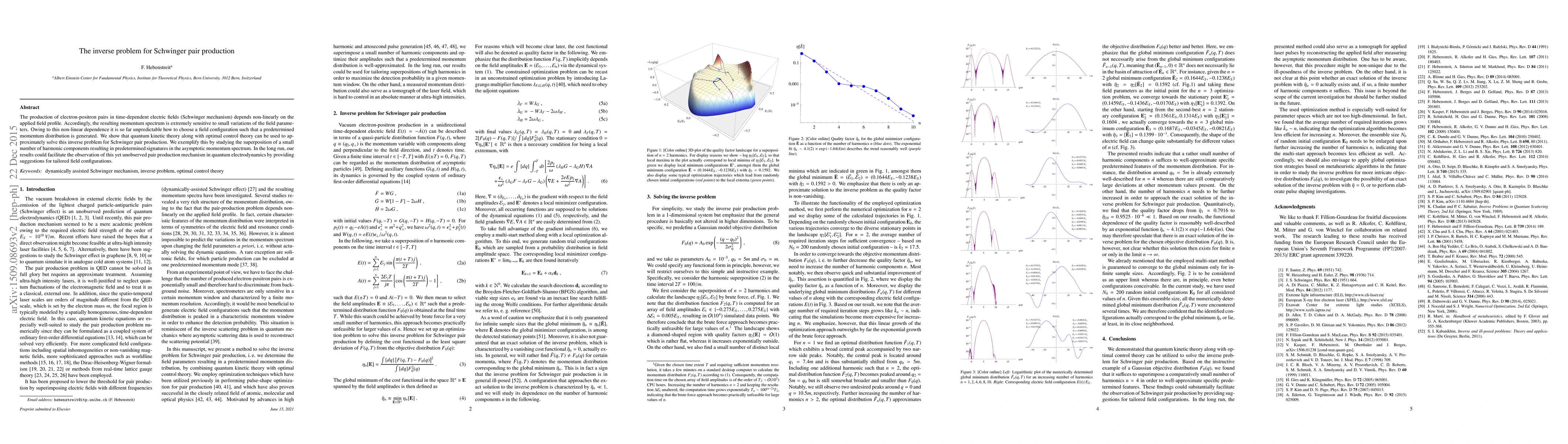 The production of electron-positron pairs in time-dependent electric fields (Schwinger mechanism) depends non-linearly on the applied field profile. Accordingly, the resulting momentum spectrum is extremely sensitive to small variations of the field parameters. Owing to this non-linear dependence it is so far unpredictable how to choose a field configuration such that a predetermined momentum distribution is generated. We show that quantum kinetic theory along with optimal control theory can be used to approximately solve this inverse problem for Schwinger pair production. We exemplify this by studying the superposition of a small number of harmonic components resulting in predetermined signatures in the asymptotic momentum spectrum. In the long run, our results could facilitate the observation of this yet unobserved pair production mechanism in quantum electrodynamics by providing suggestions for tailored field configurations.