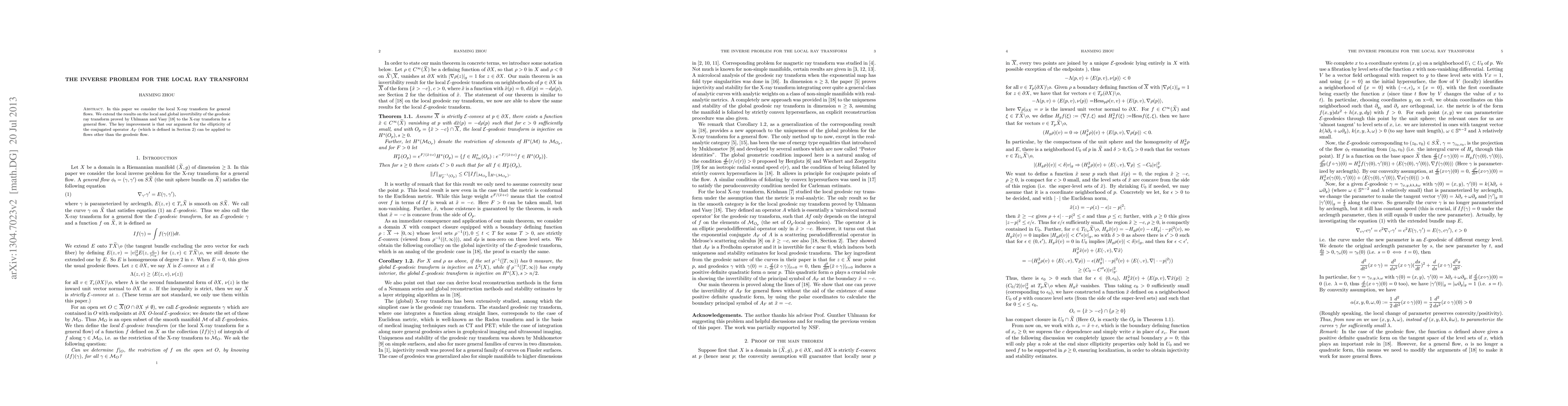 In this paper we consider the local X-ray transform for general flows. We extend the results on the local and global invertibility of the geodesic ray transform proved by Uhlmann and Vasy \cite{UV} to the X-ray transform for a general flow. The key improvement is that our argument for the ellipticity of the conjugated operator $A_F$ (which is defined in Section 2) can be applied to flows other than the geodesic flow.