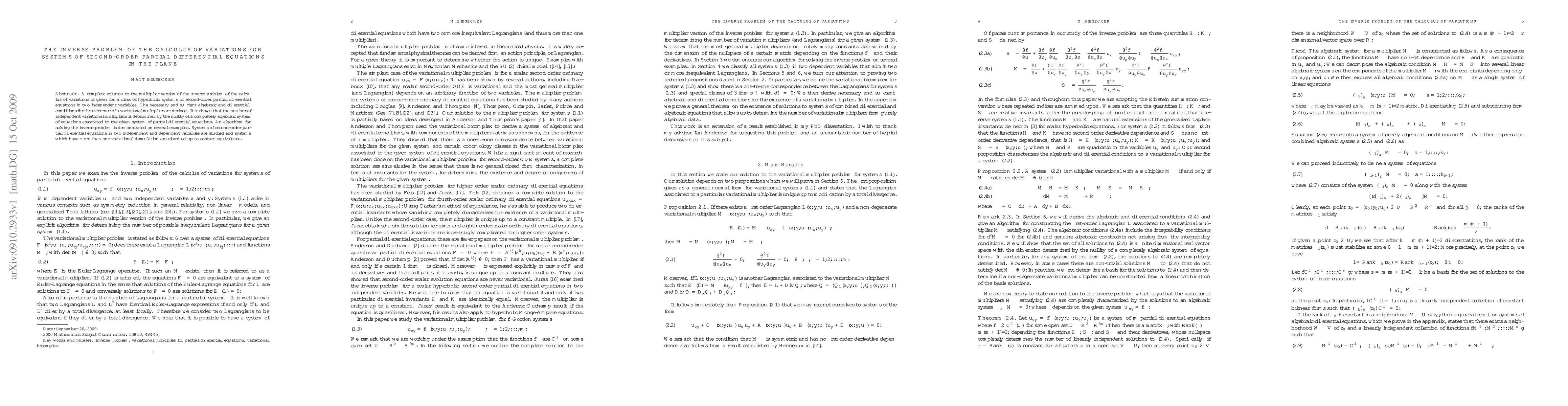 A complete solution to the multiplier version of the inverse problem of the calculus of variations is given for a class of hyperbolic systems of second-order partial differential equations in two independent variables. The necessary and sufficient algebraic and differential conditions for the existence of a variational multiplier are derived. It is shown that the number of independent variational multipliers is determined by the nullity of a completely algebraic system of equations associated to the given system of partial differential equations. An algorithm for solving the inverse problem is demonstrated on several examples. Systems of second-order partial differential equations in two independent and dependent variables are studied and systems which have more than one variational formulation are classified up to contact equivalence.