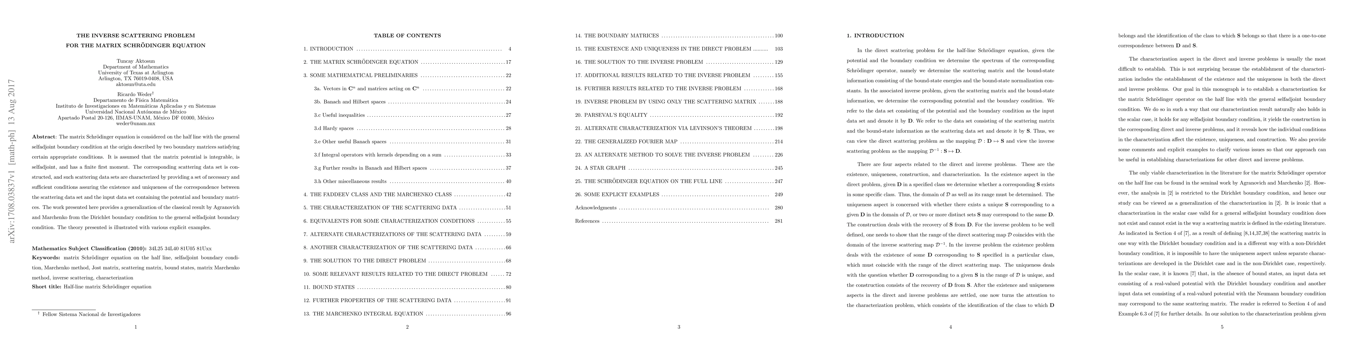 The matrix Schr\"odinger equation is considered on the half line with the general selfadjoint boundary condition at the origin described by two boundary matrices satisfying certain appropriate conditions. It is assumed that the matrix potential is integrable, is selfadjoint, and has a finite first moment. The corresponding scattering data set is constructed, and such scattering data sets are characterized by providing a set of necessary and sufficient conditions assuring the existence and uniqueness of the correspondence between the scattering data set and the input data set containing the potential and boundary matrices. The work presented here provides a generalization of the classical result by Agranovich and Marchenko from the Dirichlet boundary condition to the general selfadjoint boundary condition. The theory presented is illustrated with various explicit examples.