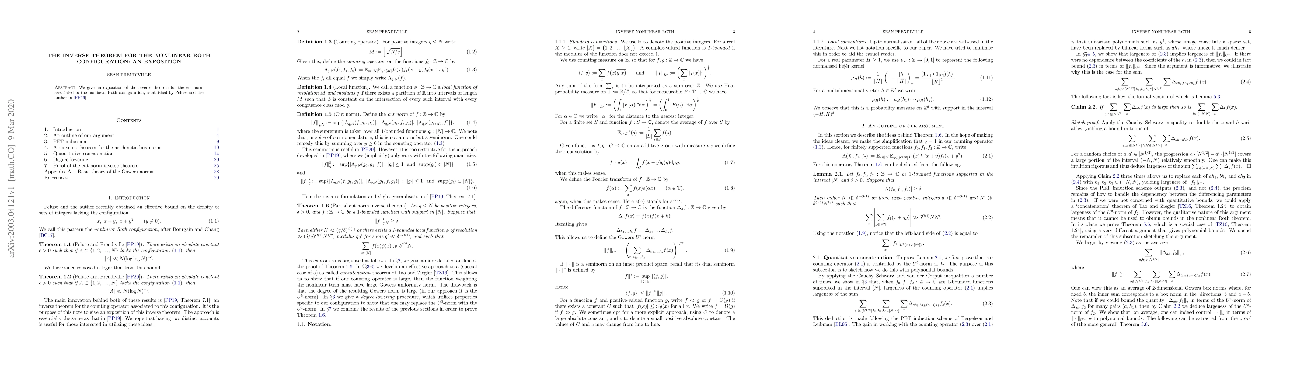 This paper presents an exposition of the inverse theorem for a specific mathematical configuration, providing insights into its key findings and implications.
