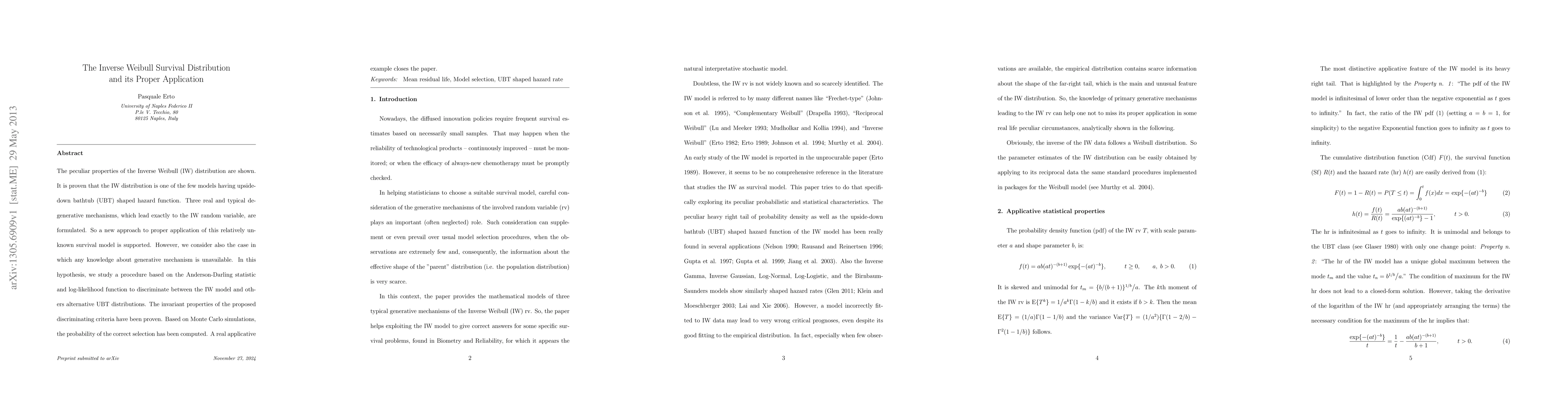 The paper investigates the Inverse Weibull distribution, a relatively unknown survival model with unique properties, including an upside-down bathtub-shaped hazard function. It proposes a new approach for its proper application and develops a method to discriminate between this model and others using the Anderson-Darling statistic and log-likelihood function.
