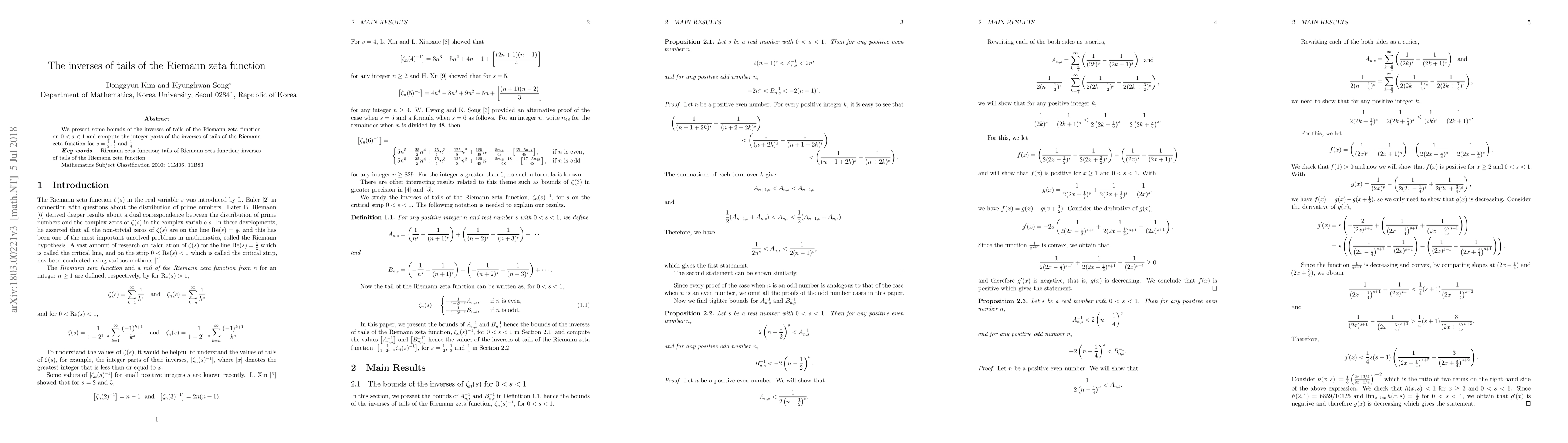 We present some bounds of the inverses of tails of the Riemann zeta function on $0 < s < 1$ and compute the integer parts of the inverses of tails of the Riemann zeta function for $s=\frac{1}{2}, \frac{1}{3}$ and $\frac{1}{4}$.
