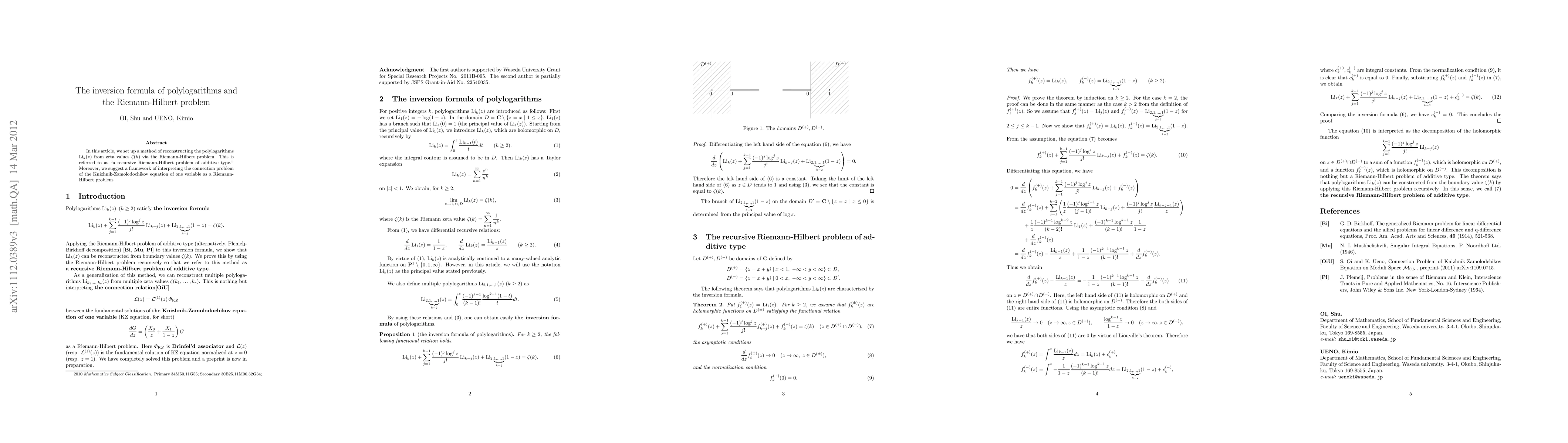 This paper develops a method to reconstruct polylogarithms $\mathrm{Li}_k(z)$ from zeta values $\zeta(k)$ using the Riemann-Hilbert problem, termed a "recursive Riemann-Hilbert problem of additive type." It also proposes a framework to interpret the Knizhnik-Zamolodchikov equation's connection problem as a Riemann-Hilbert problem.