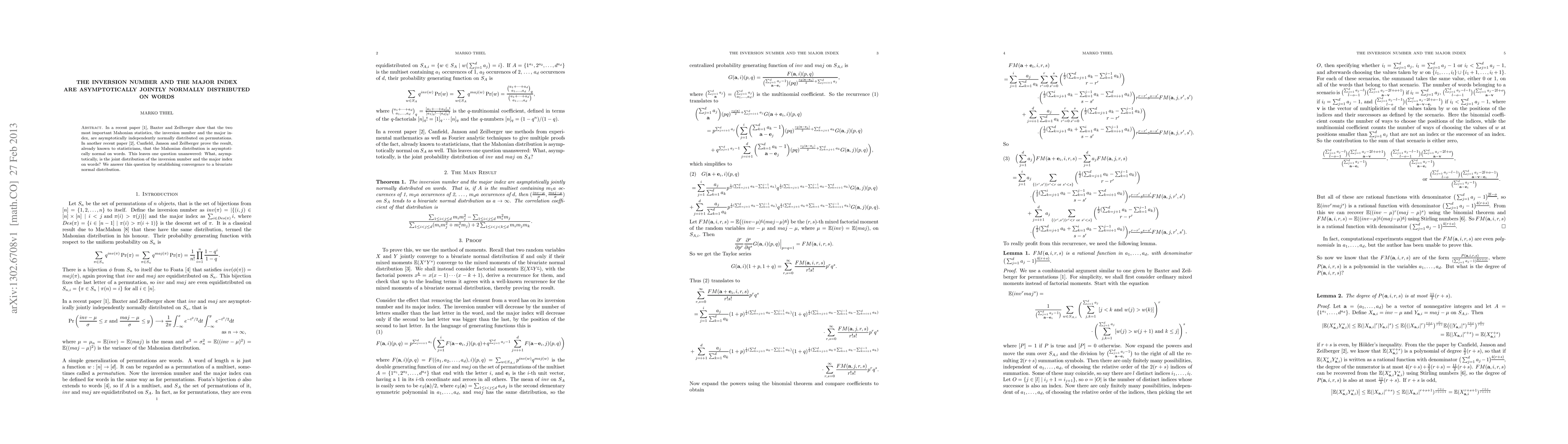 Researchers prove that the inversion number and major index on words converge to a bivariate normal distribution as the length of words increases.