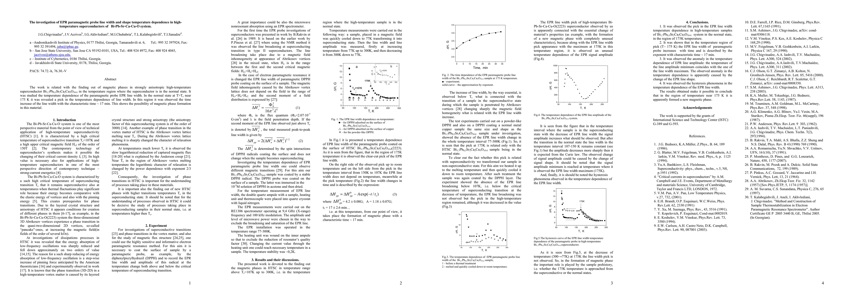 The work is related with the finding out of magnetic phases in strongly anisotropic high-temperature superconductor Bi1,7Pb0,3Sr2Ca2Cu3O10-d in the temperature region where the superconductor is in the normal state. It was studied the temperature dependence of the paramagnetic probe EPR line width. In the normal state at T>Tc near 175 K it was revealed a pick in the temperature dependence of line width. In this region it was observed the time increase of the line width with the characteristic time ~ 17 min. This shows the possibility of magnetic phase formation in this material.