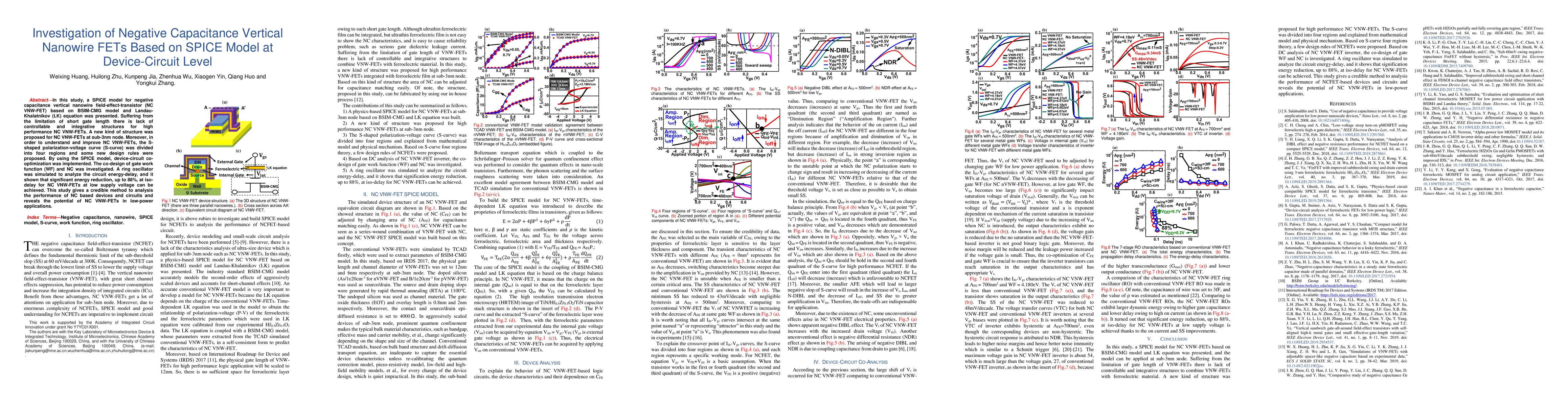 In this study, a SPICE model for negative capacitance vertical nanowire field-effect-transistor (NC VNW-FET) based on BSIM-CMG model and Landau-Khalatnikov (LK) equation was presented. Suffering from the limitation of short gate length there is lack of controllable and integrative structures for high performance NC VNW-FETs. A new kind of structure was proposed for NC VNW-FETs at sub-3nm node. Moreover, in order to understand and improve NC VNW-FETs, the S-shaped polarization-voltage curve (S-curve) was divided into four regions and some new design rules were proposed. By using the SPICE model, device-circuit co-optimization was implemented. The co-design of gate work function (WF) and NC was investigated. A ring oscillator was simulated to analyze the circuit energy-delay, and it shown that significant energy reduction, up to 88%, at iso-delay for NC VNW-FETs at low supply voltage can be achieved. This study gives a credible method to analysis the performance of NC based devices and circuits and reveals the potential of NC VNW-FETs in low-power applications.