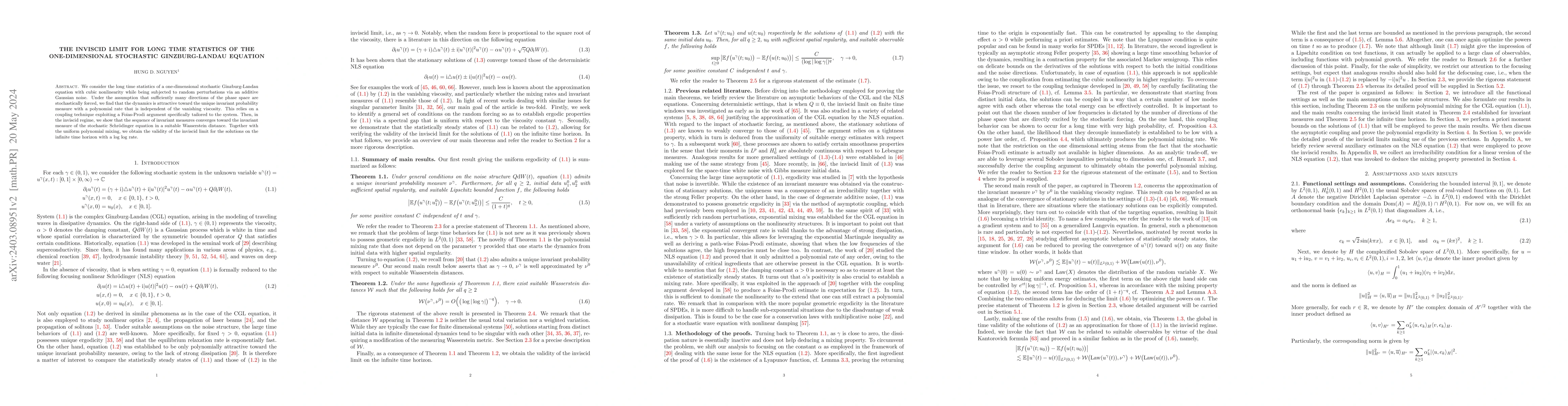 This research studies the long-term behavior of a stochastic Ginzburg-Landau equation with cubic nonlinearity under Gaussian noise, demonstrating that the system converges to a unique invariant probability measure. In the inviscid limit, the invariant measures converge to those of a stochastic Schrödinger equation, ensuring the validity of the inviscid limit with a log log rate.