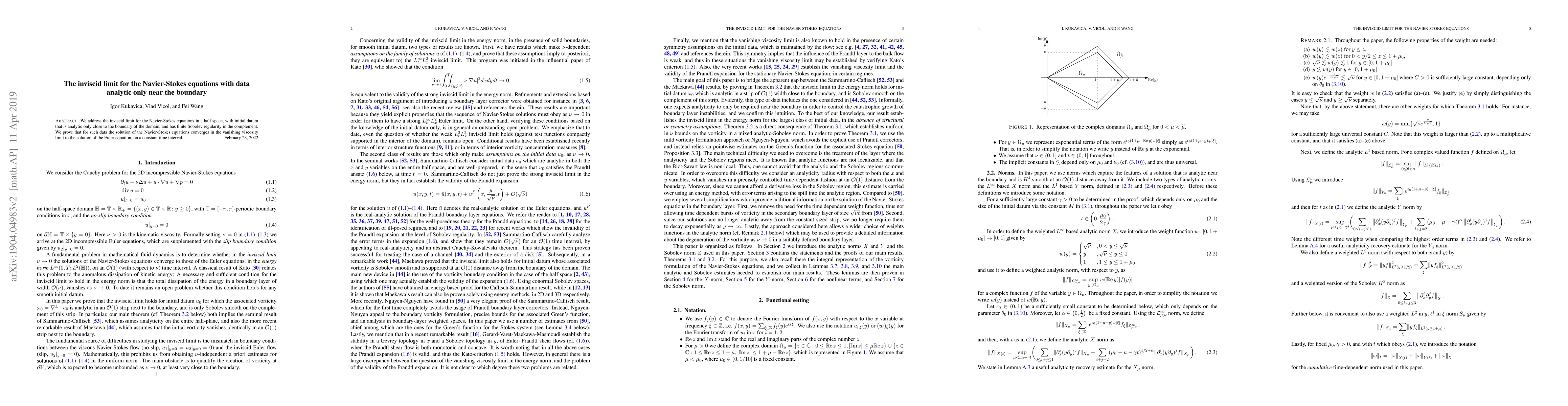 This paper investigates the inviscid limit for the Navier-Stokes equations in a half-space, where initial data is analytic near the boundary but has finite regularity elsewhere. It proves that the solution converges to the Euler equation solution as viscosity vanishes.