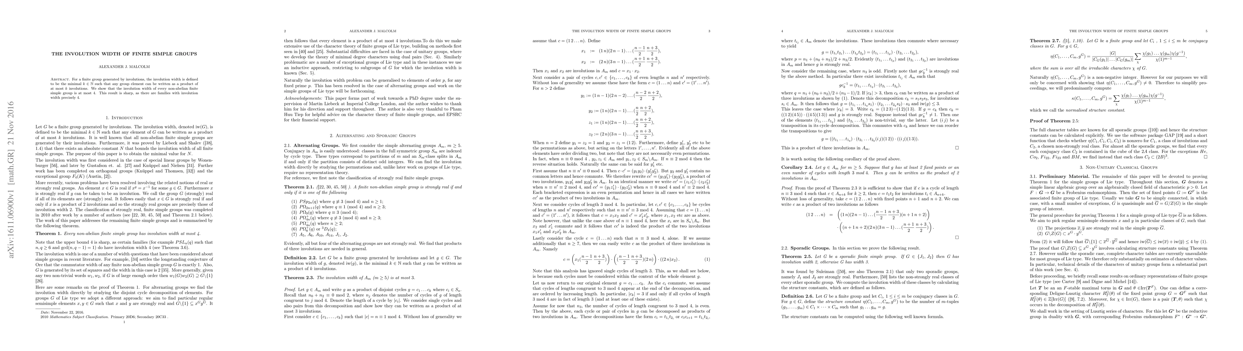 The involution width of a finite group generated by involutions is the minimum number of involutions required to express any group element. The paper demonstrates that the involution width for any non-abelian finite simple group is at most 4, with some families achieving this maximum width.