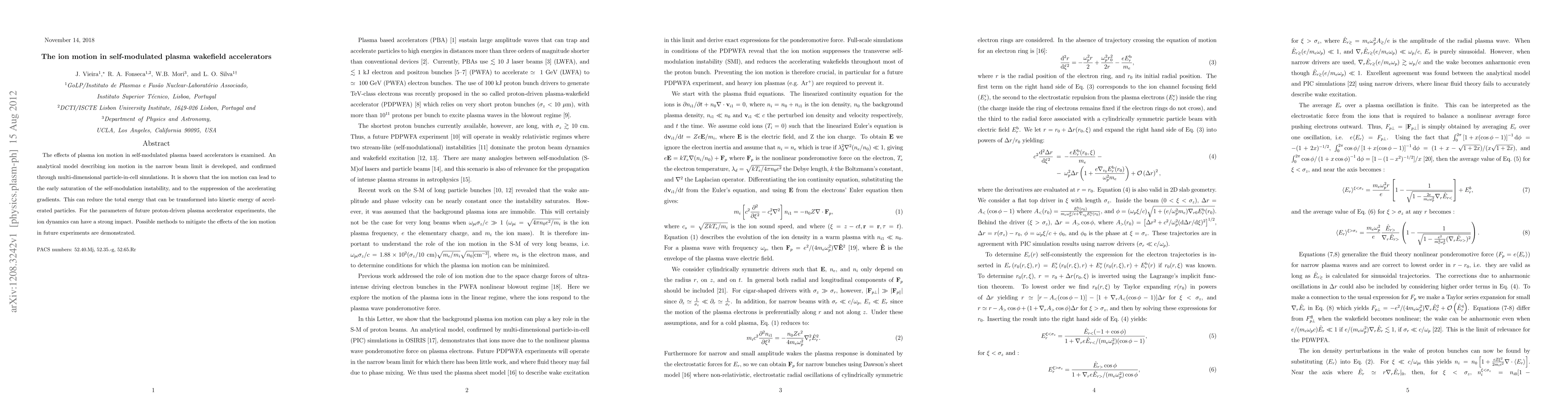 This paper develops an analytical model for ion motion in self-modulated plasma wakefield accelerators, validated by simulations, and shows that ion dynamics can lead to early saturation and reduced accelerating gradients. It proposes methods to mitigate these effects for future proton-driven experiments.