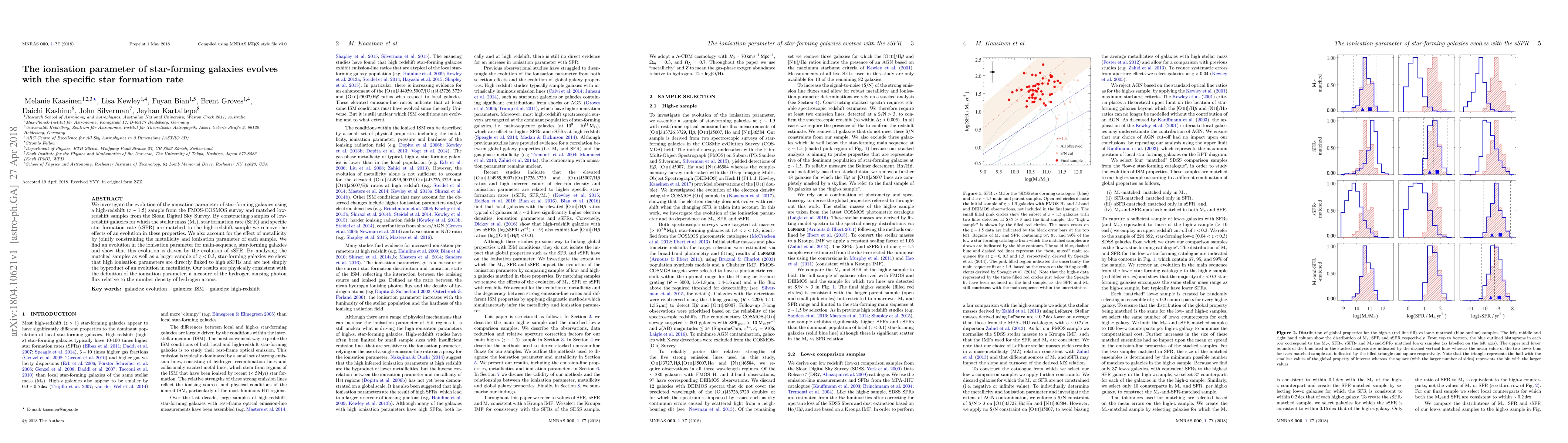 This study finds that the ionisation parameter of star-forming galaxies evolves with the specific star formation rate (sSFR), showing high ionisation parameters correlate with high sSFRs, independent of metallicity effects. The research uses high-redshift and low-redshift galaxy samples to isolate these relationships.