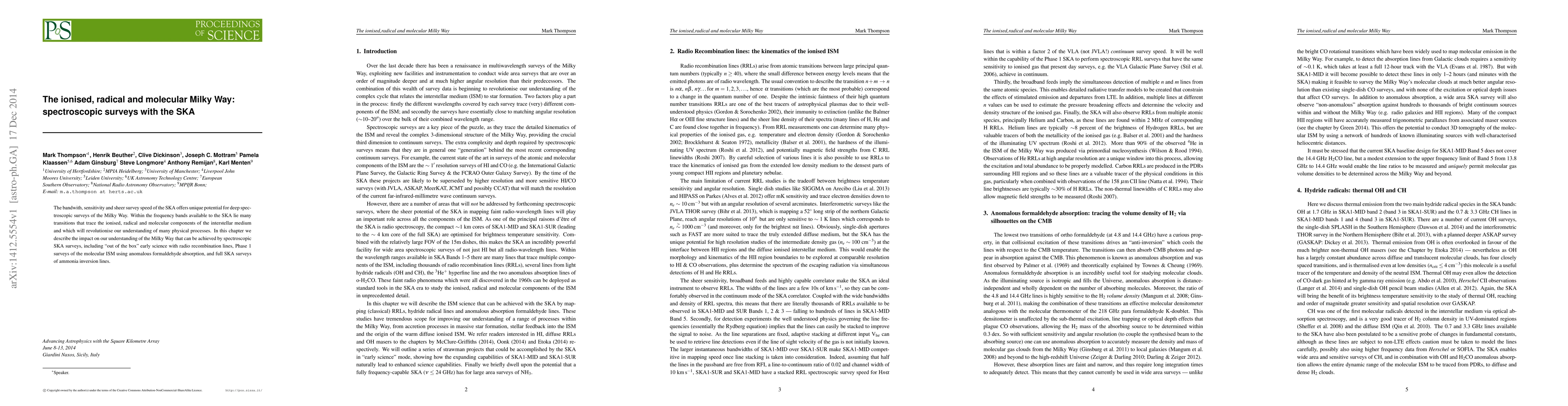 This paper discusses how the SKA's advanced capabilities will enable deep spectroscopic surveys of the Milky Way, revealing the ionised, radical, and molecular components of the interstellar medium and significantly enhancing our understanding of various physical processes through early science, molecular ISM surveys, and comprehensive ammonia line surveys.