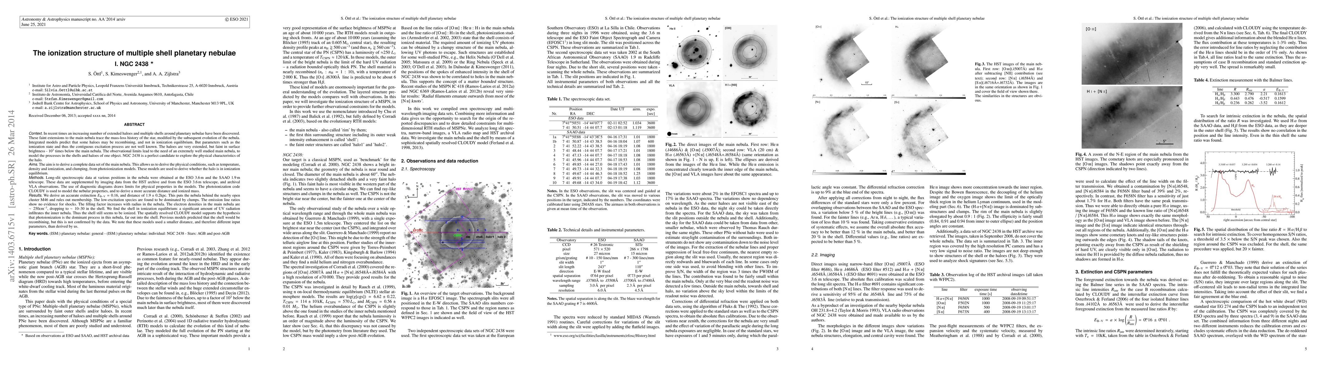 This study analyzes NGC 2438, a planetary nebula with multiple shells, using spectroscopic and imaging data from HST and VLA. Key findings include determining an accurate extinction (E(B-V)=0.16) and distance (1.9kpc), placing the nebula behind the open cluster M46. The research reveals that low-excitation species are dominated by clumps, with no evidence of shocks, and the shell is in ionization equilibrium. Contrary to previous models, photoionization, not recombination, is the dominant process in this nebula, even extending to the outer shell. Discrepancies with previous models are attributed to differences in input parameters due to distance variations.