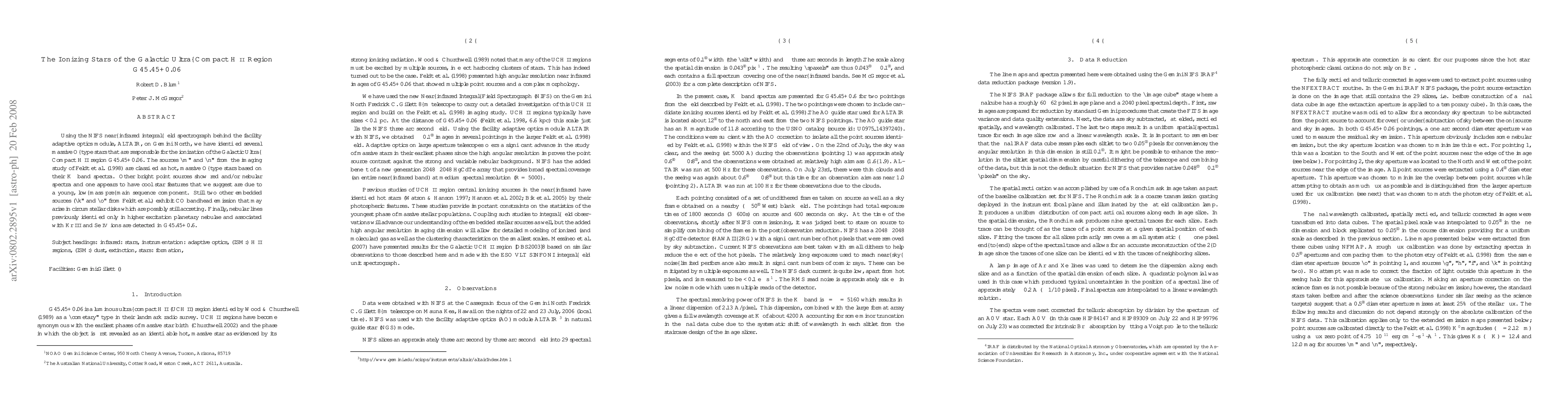 This study employs the NIFS spectrograph on Gemini North to identify O-type stars ionizing the Galactic Ultra-Compact HII region G45.45+0.06. The findings classify specific sources as massive O-type stars and reveal other sources with CO emissions and rare ions like KrIII and SeIV.