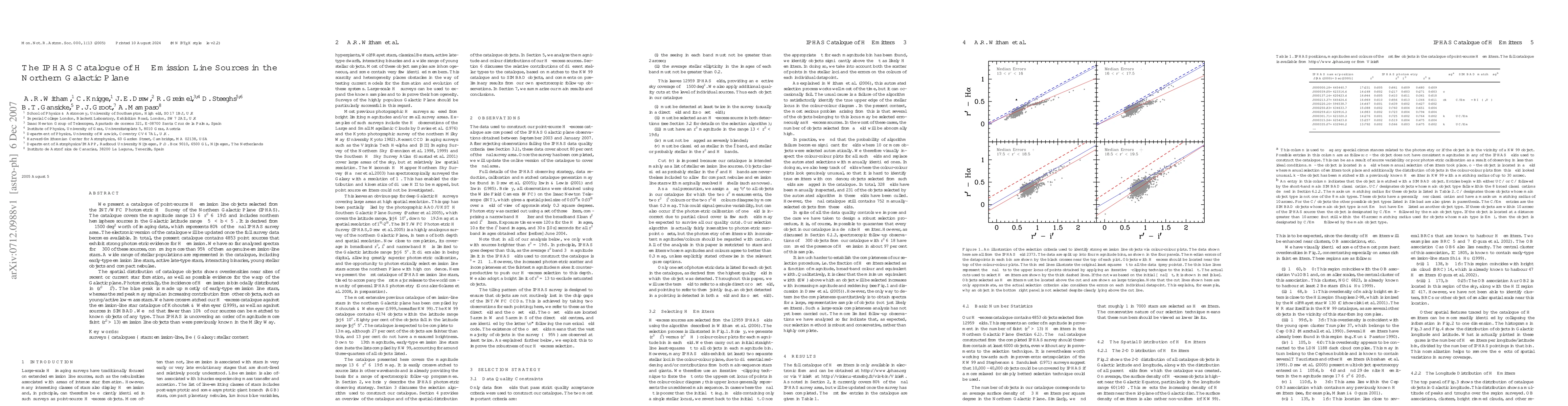 The IPHAS Catalogue identifies 4,853 Halpha emission line sources in the northern Galactic Plane, revealing a diverse range of stellar populations and uncovering a significant number of previously unknown faint emission-line stars. The catalogue highlights overdensities near star-forming regions and suggests evidence for the Galactic plane's warp.