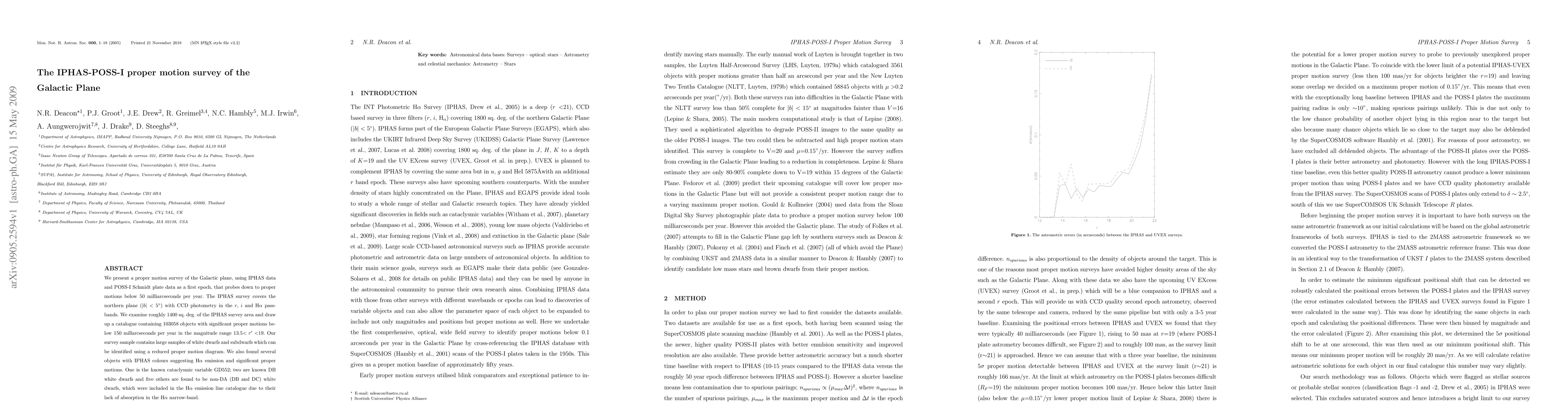 This paper presents a proper motion survey of the northern Galactic plane using IPHAS and POSS-I data, cataloging 103,058 objects with significant proper motions. The survey identifies large samples of white dwarfs and subdwarfs, and finds several Hα emission objects, including non-DA white dwarfs.