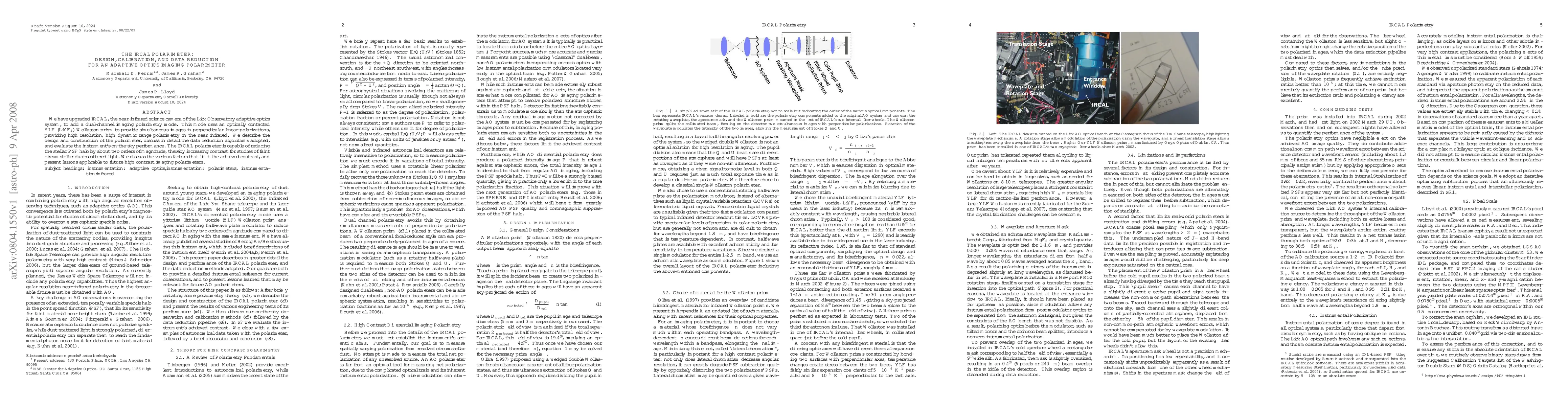 The IRCAL polarimeter, an upgrade to the Lick Observatory's adaptive optics system, employs a dual-channel imaging mode with a YLF Wollaston prism for high-resolution near-infrared polarimetry. The paper details its design, calibration, data reduction, and on-sky performance, highlighting its ability to significantly reduce stellar PSF halo and improve contrast for faint circumstellar light studies.