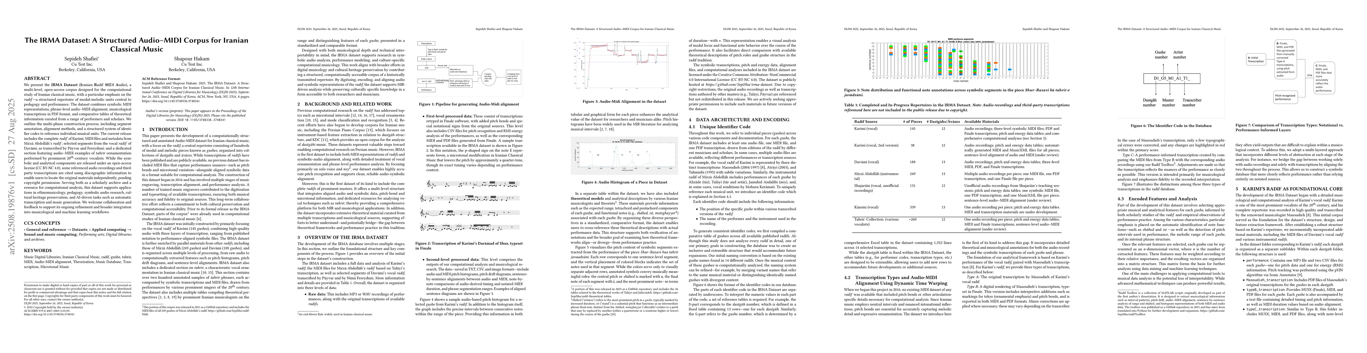 We present the IRMA Dataset (Iranian Radif MIDI Audio), a multi-level, open-access corpus designed for the computational study of Iranian classical music, with a particular emphasis on the radif, a structured repertoire of modal-melodic units central to pedagogy and performance. The dataset combines symbolic MIDI representations, phrase-level audio-MIDI alignment, musicological transcriptions in PDF format, and comparative tables of theoretical information curated from a range of performers and scholars. We outline the multi-phase construction process, including segment annotation, alignment methods, and a structured system of identifier codes to reference individual musical units. The current release includes the complete radif of Karimi; MIDI files and metadata from Mirza Abdollah's radif; selected segments from the vocal radif of Davami, as transcribed by Payvar and Fereyduni; and a dedicated section featuring audio-MIDI examples of tahrir ornamentation performed by prominent 20th-century vocalists. While the symbolic and analytical components are released under an open-access license (CC BY-NC 4.0), some referenced audio recordings and third-party transcriptions are cited using discographic information to enable users to locate the original materials independently, pending copyright permission. Serving both as a scholarly archive and a resource for computational analysis, this dataset supports applications in ethnomusicology, pedagogy, symbolic audio research, cultural heritage preservation, and AI-driven tasks such as automatic transcription and music generation. We welcome collaboration and feedback to support its ongoing refinement and broader integration into musicological and machine learning workflows.