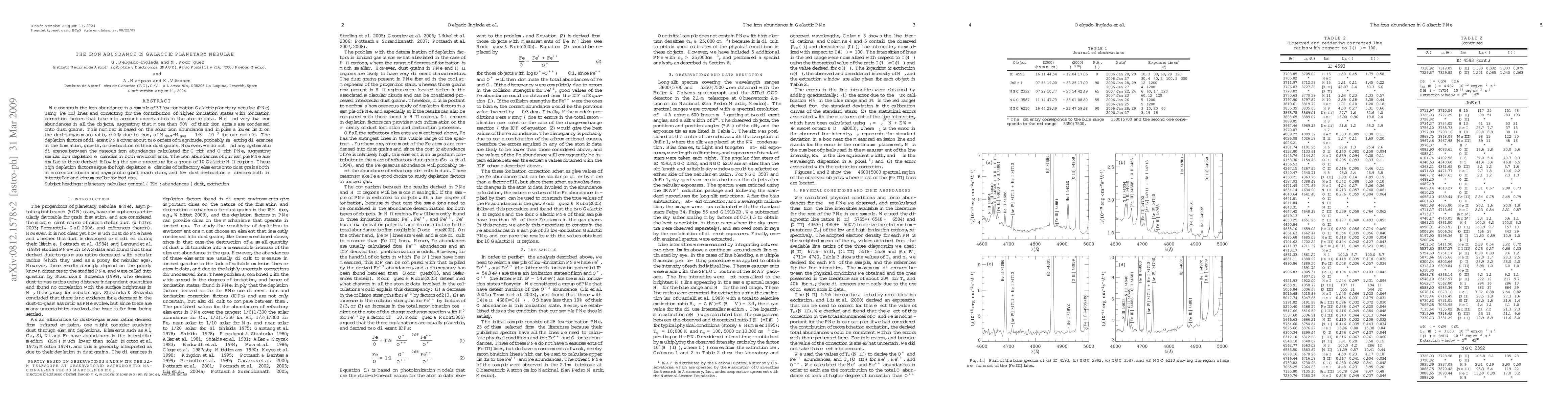 This study finds very low iron abundances in 33 Galactic planetary nebulae, indicating that over 90% of iron is condensed into dust grains, leading to a dust-to-gas mass ratio of at least 1.3x10^{-3}. The depletion factors vary widely but show no systematic difference between C-rich and O-rich PNe.