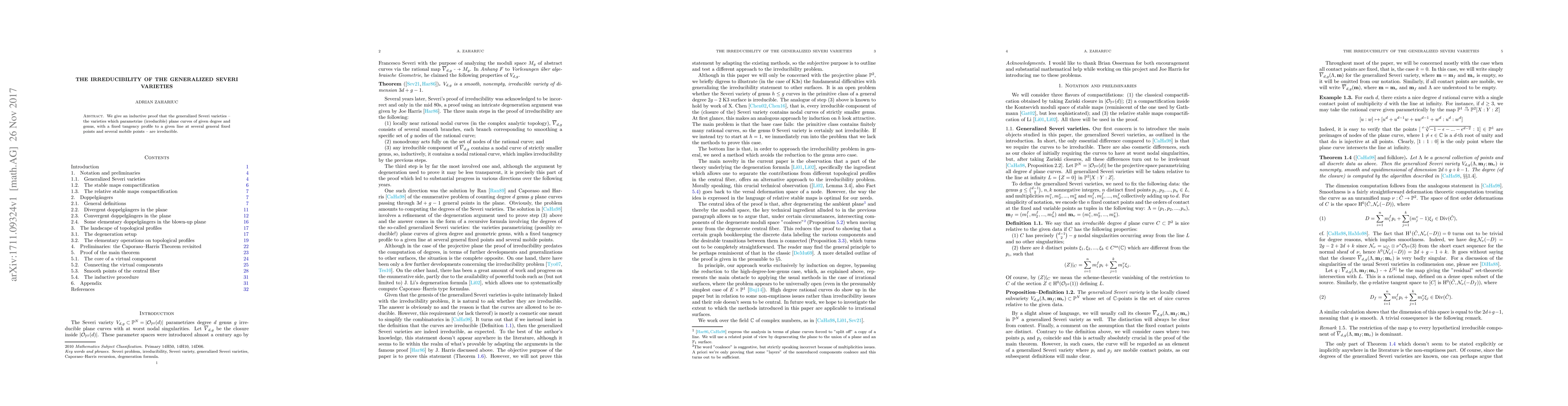 We give an inductive proof that the generalized Severi varieties -- the varieties which parametrize (irreducible) plane curves of given degree and genus, with a fixed tangency profile to a given line at several general fixed points and several mobile points -- are irreducible.