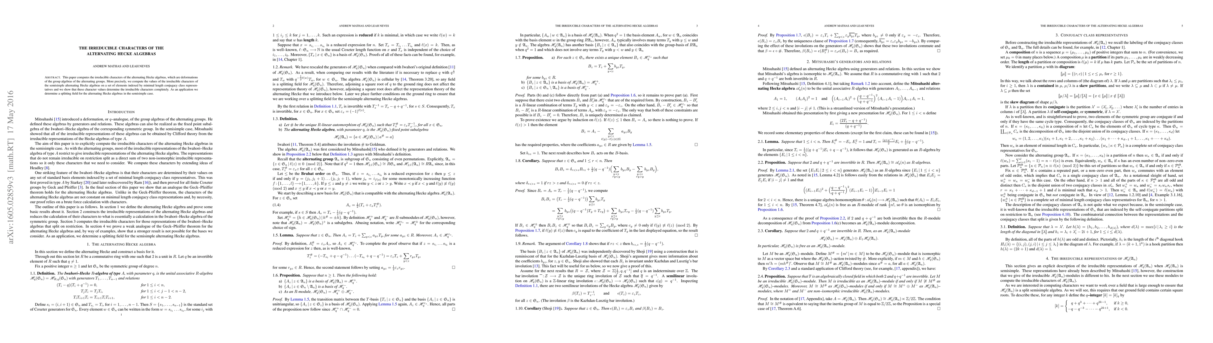This paper computes the irreducible characters of semisimple alternating Hecke algebras, demonstrating that character values on minimal length conjugacy class representatives uniquely determine these characters, and applies this to find a splitting field for these algebras.